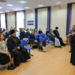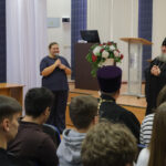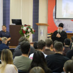 После разговора на основную тему, правящий архиерей обсудил со студентами волнующие их вопросы, например касательно Таинства Венчания и проблемы развода, современные перипетии с Константинопольской Церковью, о необходимости молиться святым, роль крёстных для человека и церковный быт.