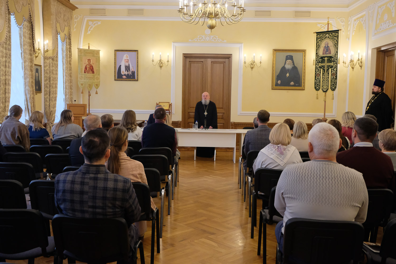 Глава Красноярской митрополии открыл собрание в конференц-зале Архиерейского дома, обратившись к присутствующим с приветственным словом: