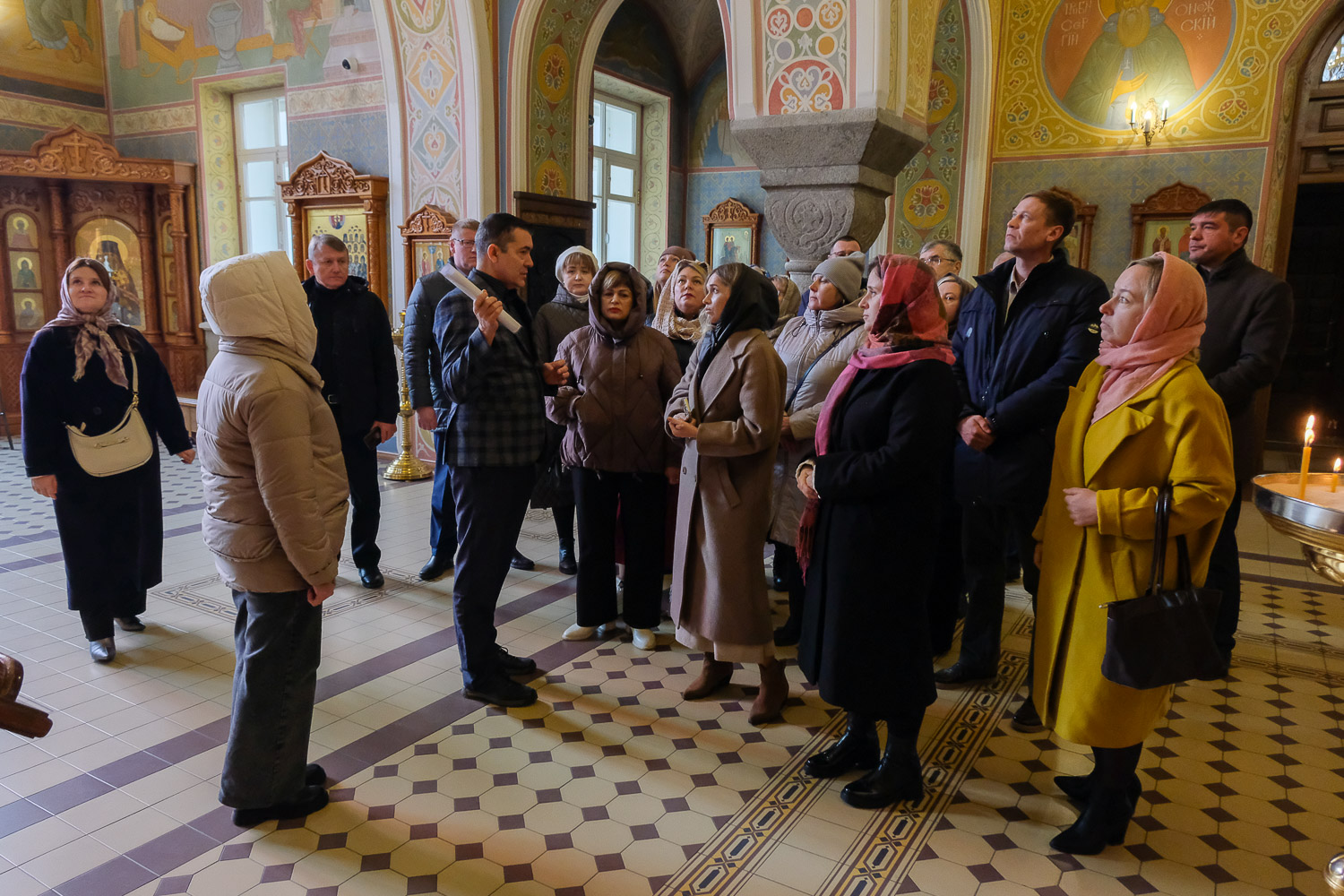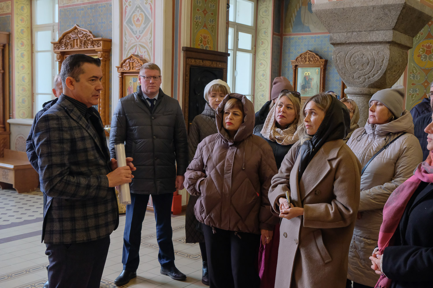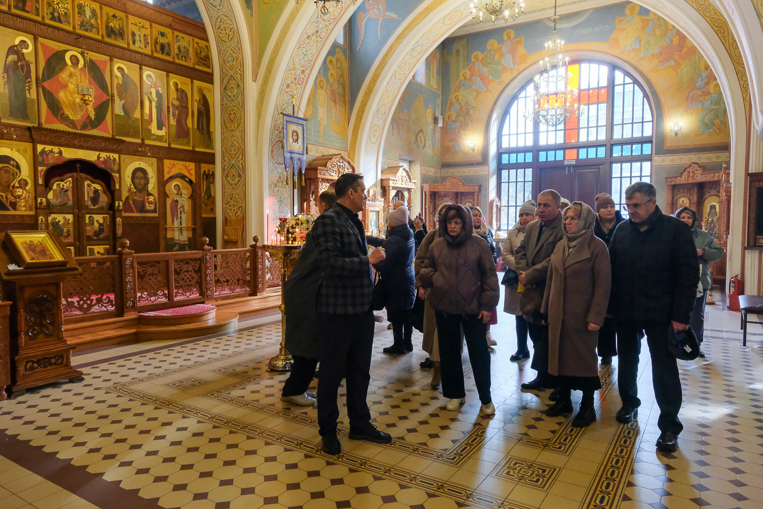 Перед встречей гостям устроили экскурсию в храме Иоанна Предтечи, а затем показали Архиерейский дом и рассказали о его истории.
