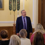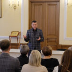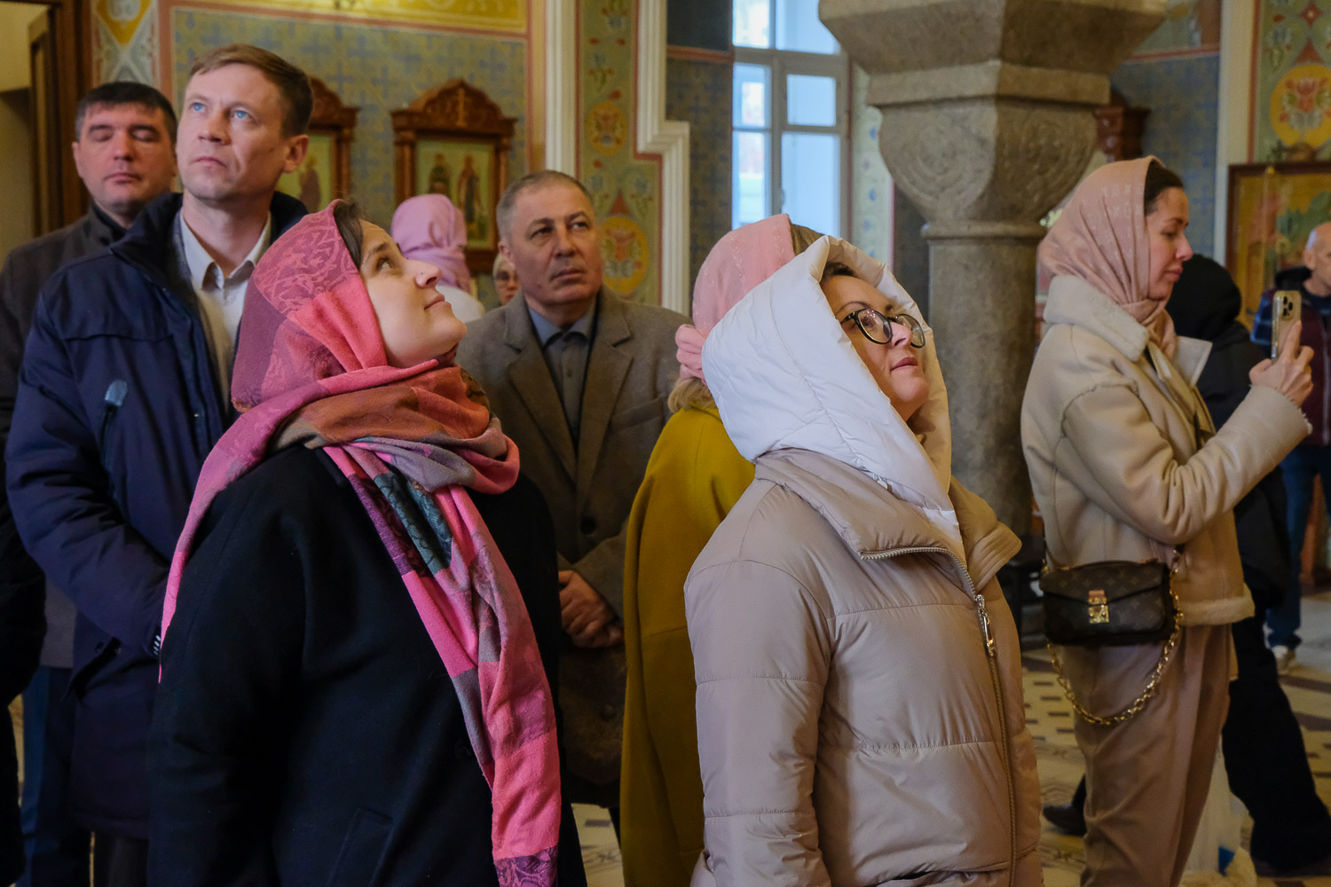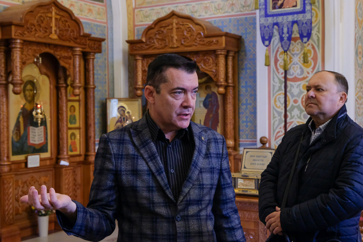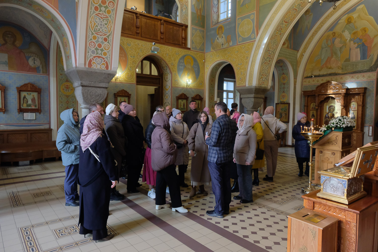 Перед встречей гостям устроили экскурсию в храме Иоанна Предтечи, а затем показали Архиерейский дом и рассказали о его истории.