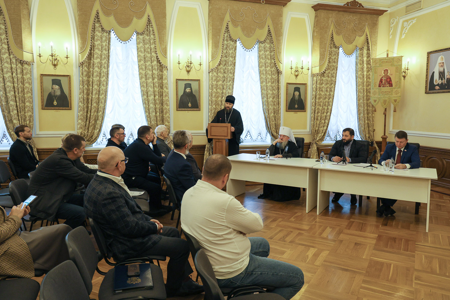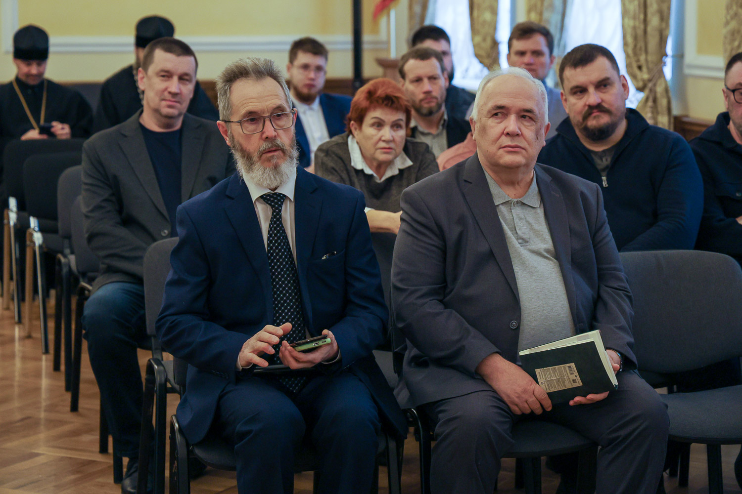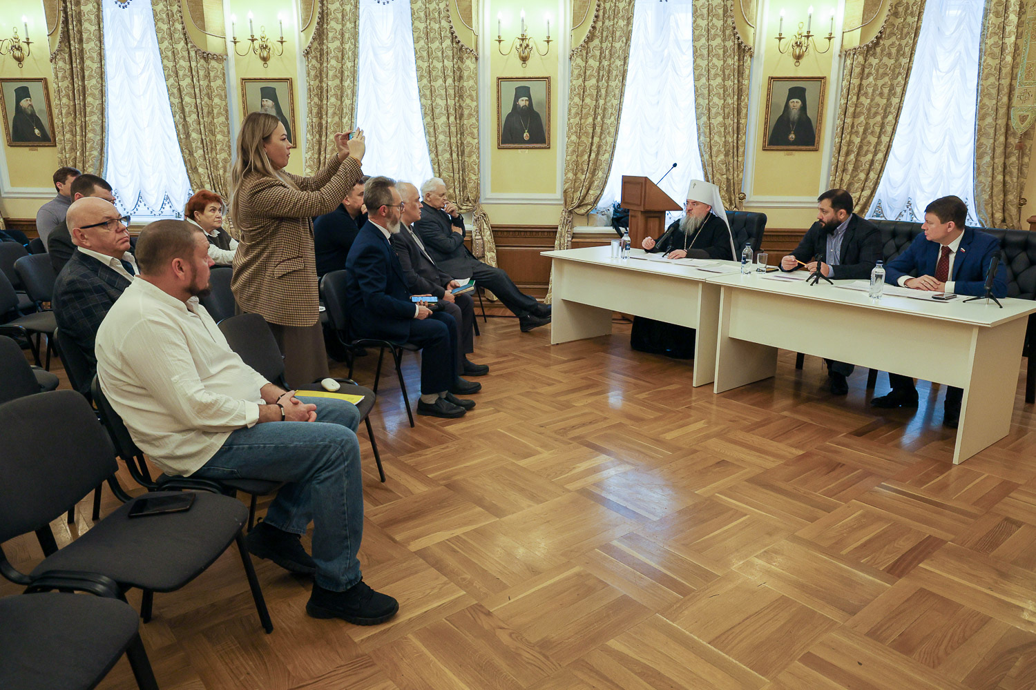 Заседание происходило в смешанном формате — в онлайн-режиме присоединились епископ Норильский и Туруханский Агафангел, епископ Енисейский и Лесосибирский Игнатий, епископ Канский и Богучанский Вячеслав. В работе совещания также приняли участие депутат Государственной думы Федерального собрания Российской Федерации Сергей Ерёмин; заместитель министра образования Красноярского края Константин Масюлис; сопредседатель регионального отделения ВРНС Сергей Витковский; сопредседатель Красноярского отделения Всемирного Русского Народного Собора Сергей Рыков; член общественного совета при Красноярской митрополии Ирина Долгушина; педагог-организатор МАОУ СШ №141 в Красноярске Елена Шумилова; председатель межрегиональной общественной организации «Вечная память Героям» Екатерина Самусева.