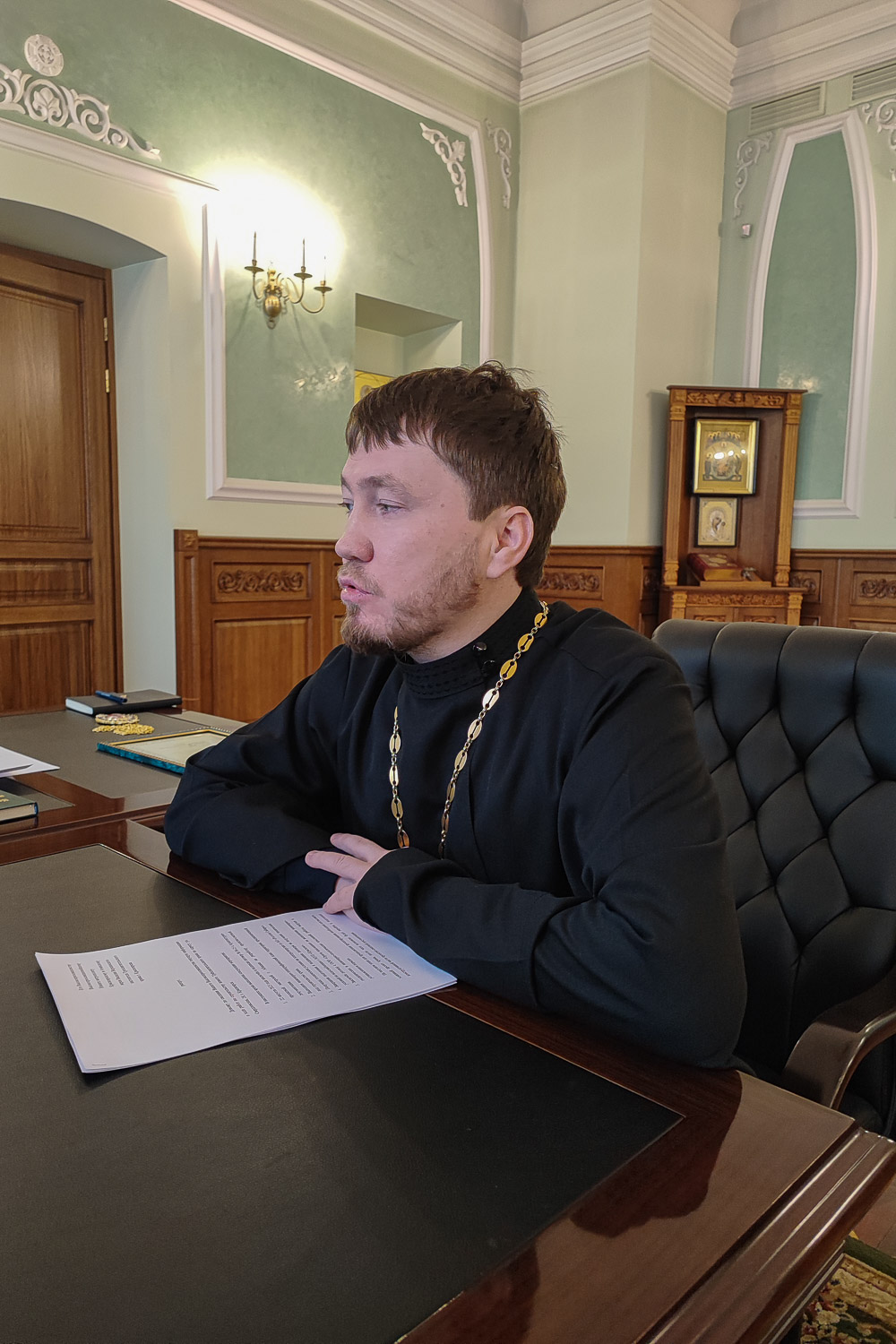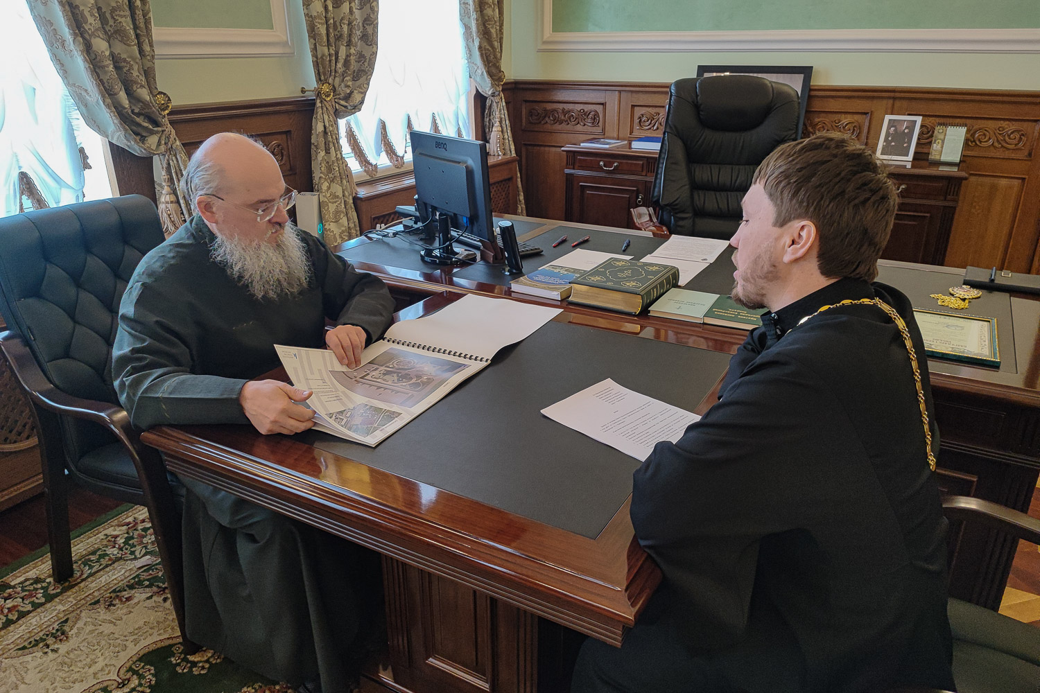 2 декабря митрополит Красноярский и Ачинский Никита провёл рабочую встречу с председателем миссионерского отдела Красноярской епархии, благочинным церквей Красноярского округа, настоятелем храма Трёх Святителей Великих города Красноярска иереем Василием Вершинским.