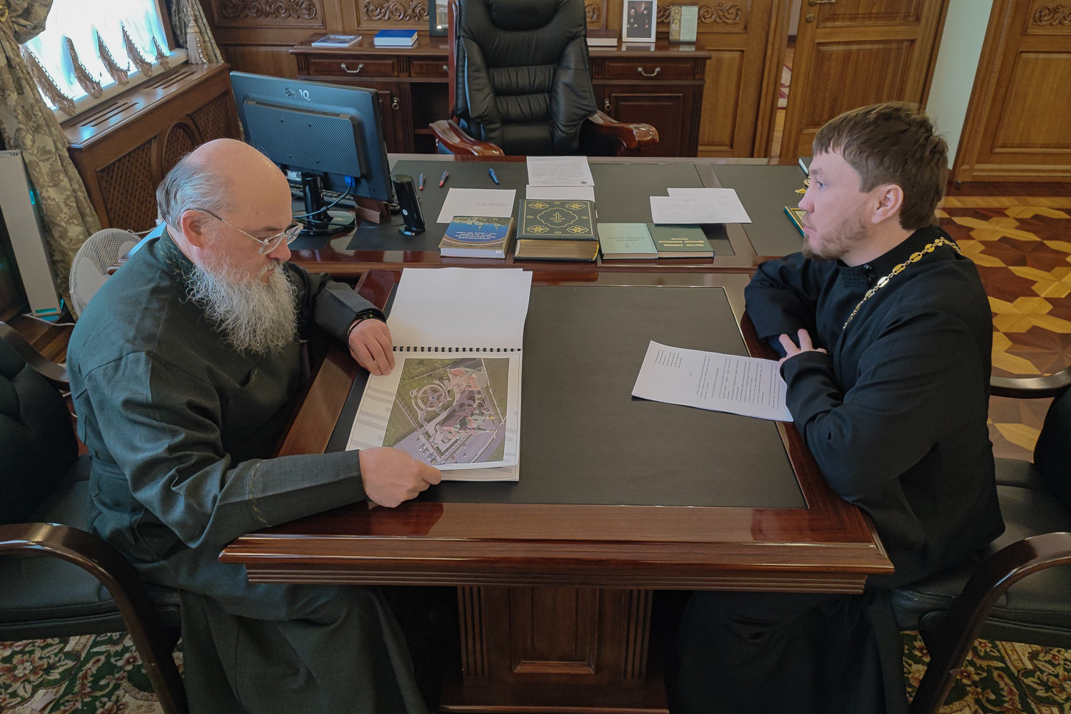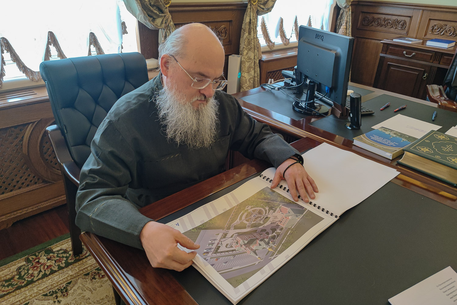 Архипастырь ознакомился с планировкой, архитектурными решениями и концепцией будущего храма, после чего благословил и утвердил представленный проект.