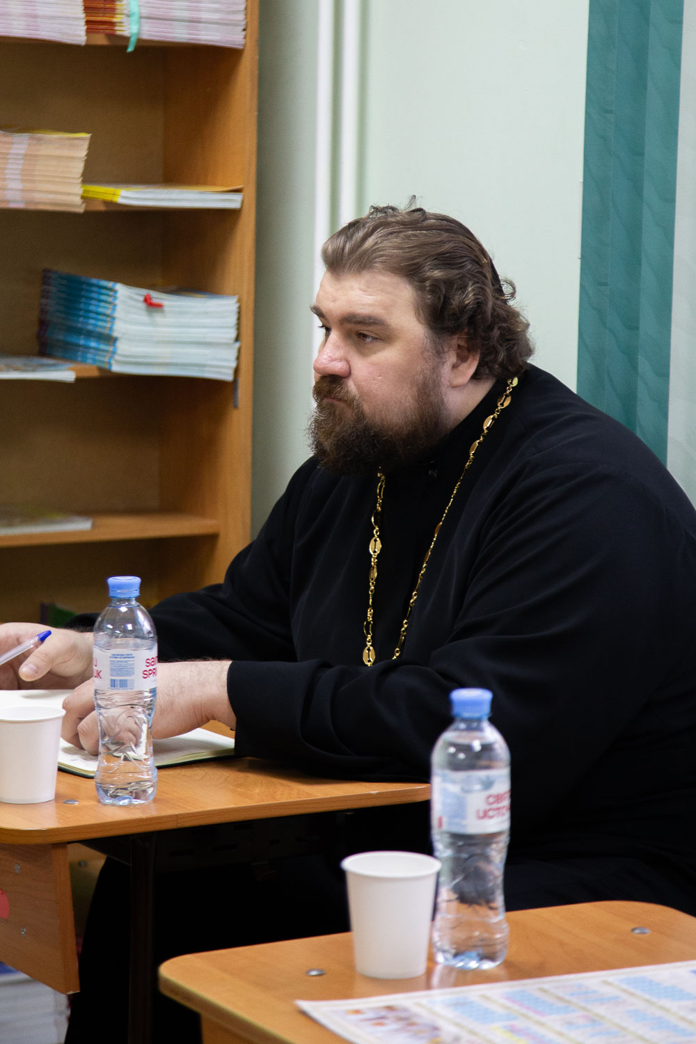 От Красноярской епархии в совещании также участвовали: заведующий канцелярией Красноярского епархиального управления, личный секретарь-референт главы митрополии иерей Владимир Лужков и благочинный Правобережного церковного округа города Красноярска, настоятель храма Рождества Христова протоиерей Максим Смоляков.