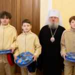 Также правящий архиерей вручил памятные сладкие подарки трём юным участникам заседания — представителям Всероссийского детско-юношеского военно-патриотического общественного движения «Юнармия».