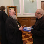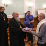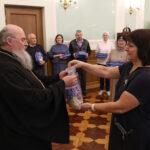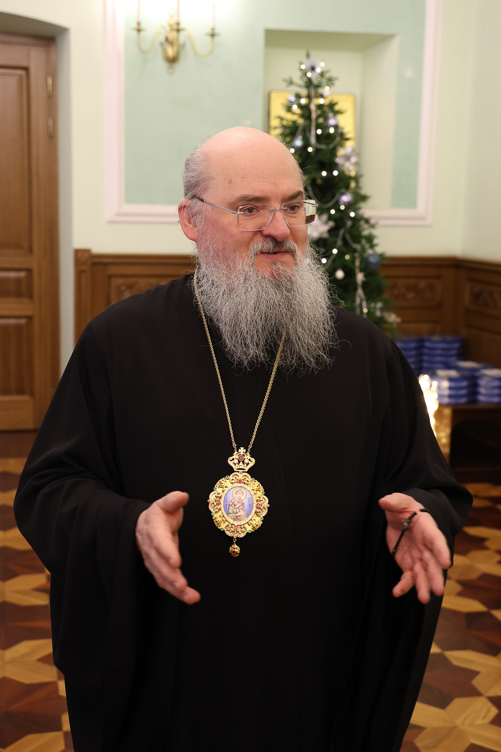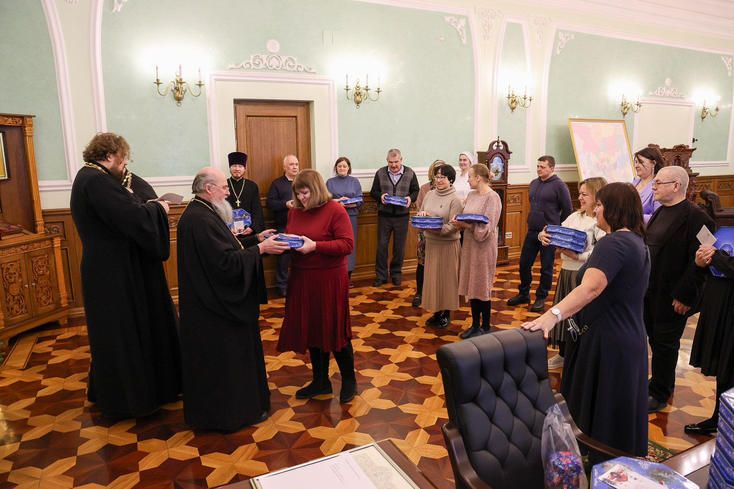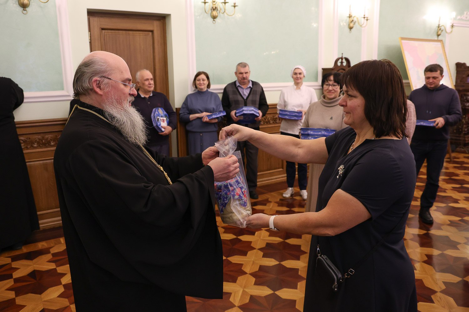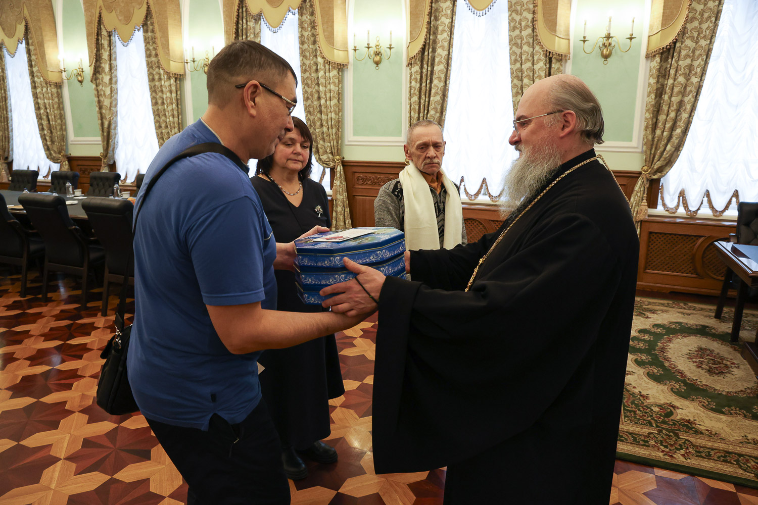 В раздаче подарков Его Высокопреосвященству помогали: заведующий канцелярией Красноярского епархиального управления, личный секретарь-референт главы Красноярской митрополии иерей Владимир Лужков и штатный клирик храма Новомучеников и Исповедников Российских города Красноярска иерей Виктор Носов.