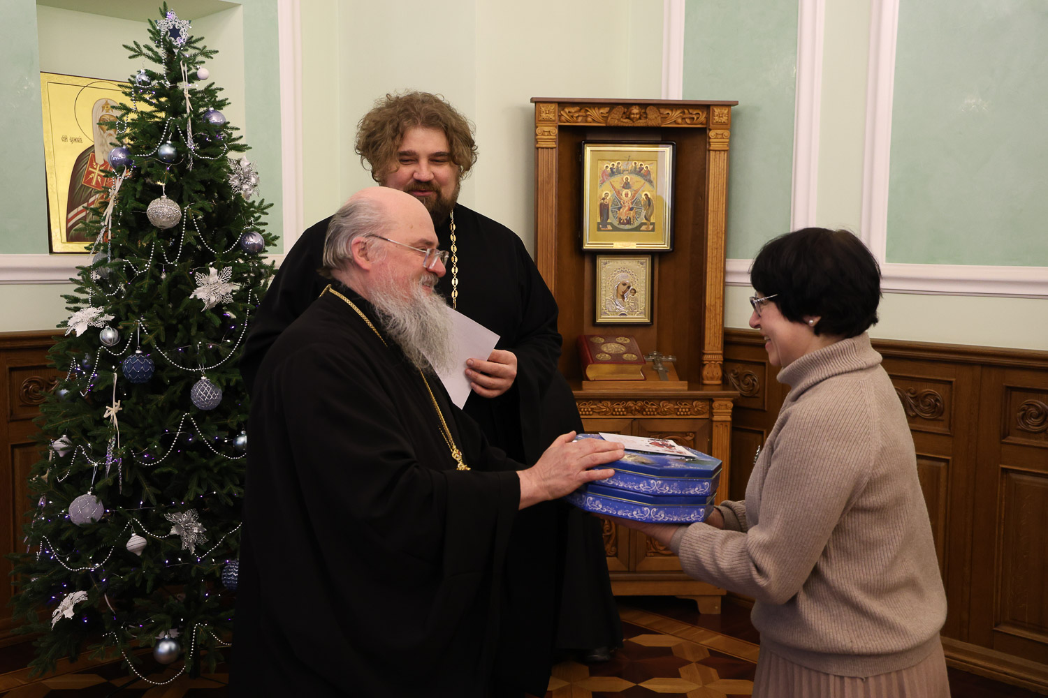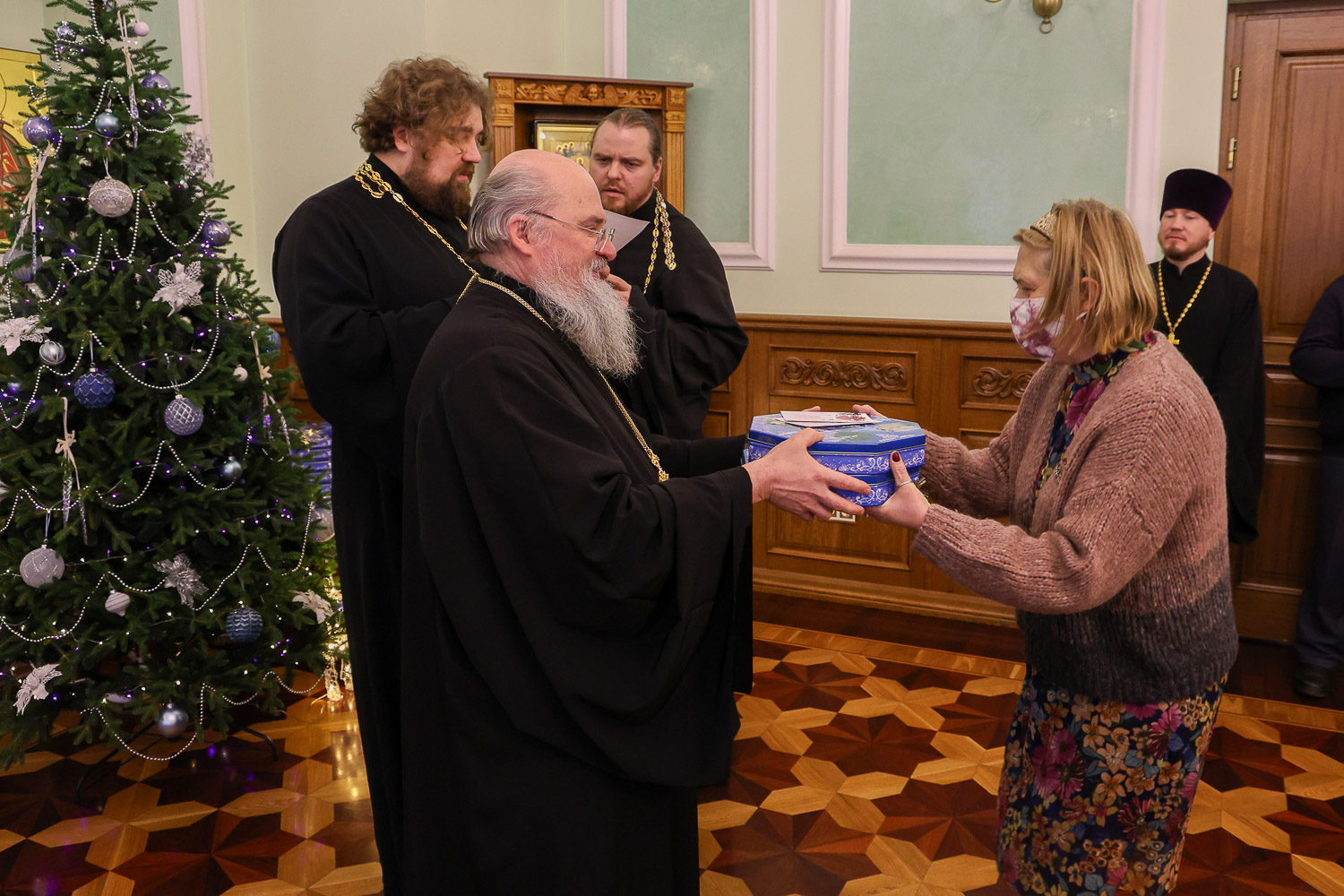 25 декабря в Архиерейском доме Красноярска состоялось вручение сладких новогодних подарков. Подарки для детей сотрудников Красноярской епархии были переданы их родителям, а также ребятам, находящимся под опекой Аппарата Уполномоченного по правам ребёнка.