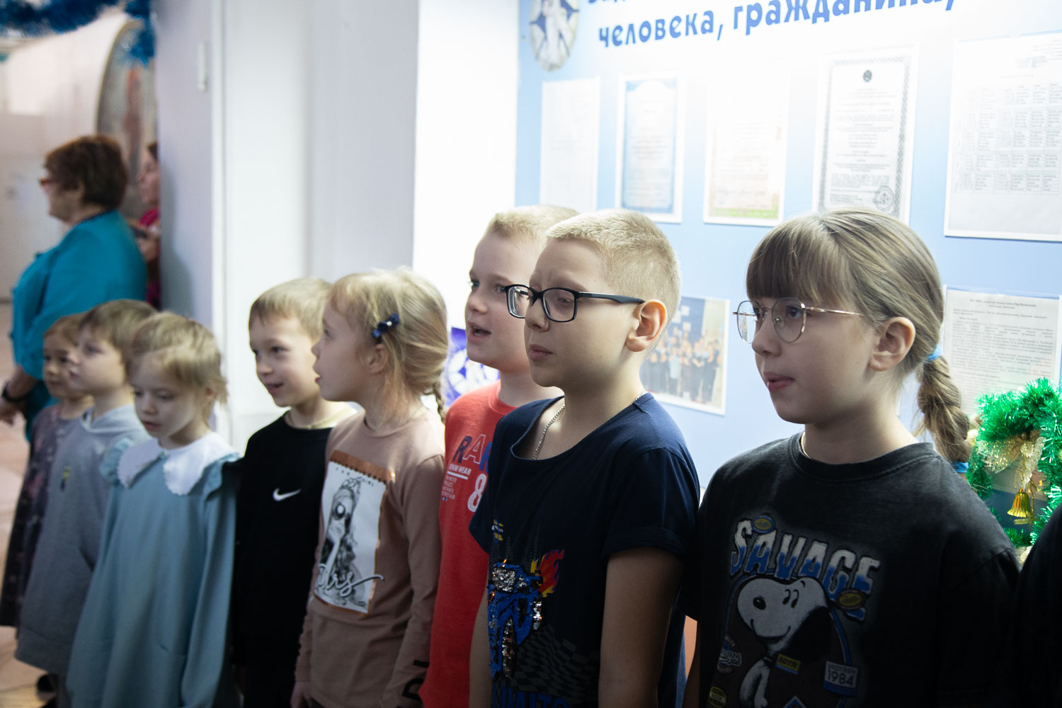 Юные гимназисты для владыки исполнили рождественское песнопение. Затем Его Высокопреосвященство обратился к учащимся и педагогам с архипастырским словом, подчеркнув, что гимназия призвана давать не только качественное светское образование, но и быть местом духовного становления личности.