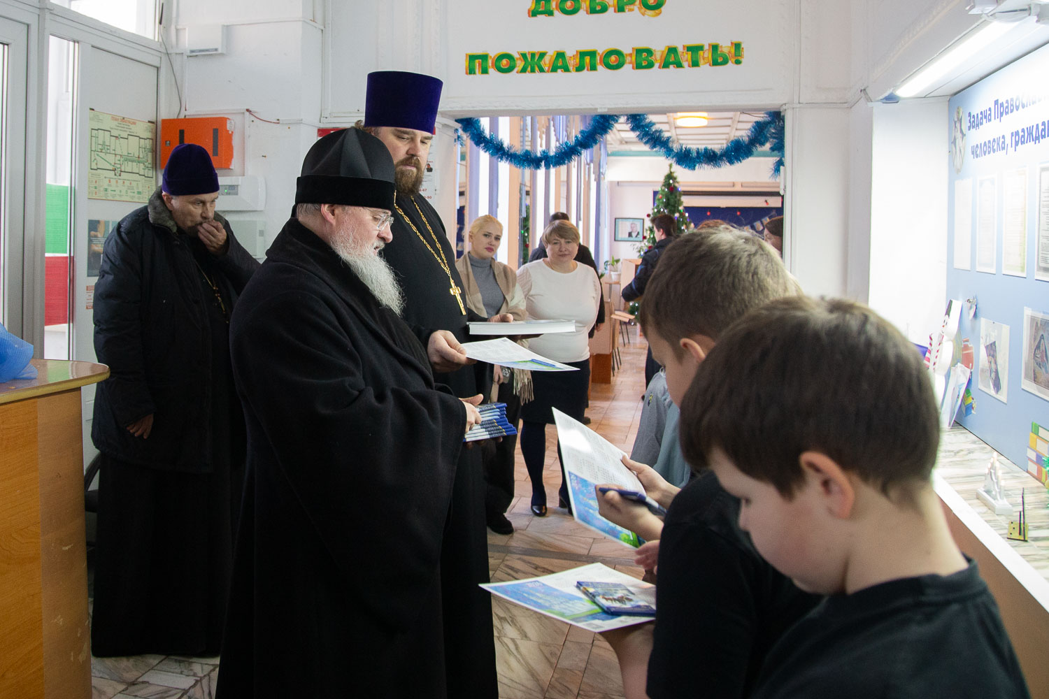 В завершение владыка поздравил всех с наступившим новым годом и Рождеством Христовым и вручил собравшимся православные календари на 2026 год и сладкие подарки для всех учащихся и сотрудников гимназии.