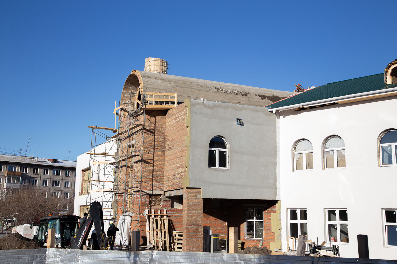 Участники совещания обсудили ход строительных работ и меры по ускорению их темпов. На данный момент полностью завершены наружные фасадные и внутренние черновые работы, ведутся чистовые работы. Завершены работы по возведению свода здания, закончен монтаж временного теплоснабжения, согласованы цветовые решения для учебных кабинетов. Над входом в гимназический корпус планируется разместить мозаичную Владимирскую икону Божией Матери.