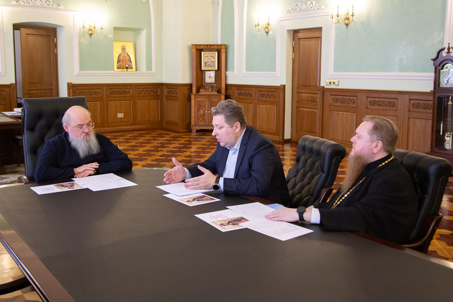 11 марта в Архиерейском доме Красноярска состоялась встреча митрополита Красноярского и Ачинского Никиты с настоятелем храма преподобного Сергия Радонежского города Красноярска иереем Иоанном Долговым и директором МАОУ ДО ЦДО «Спектр» Алексеем Храмцовым.