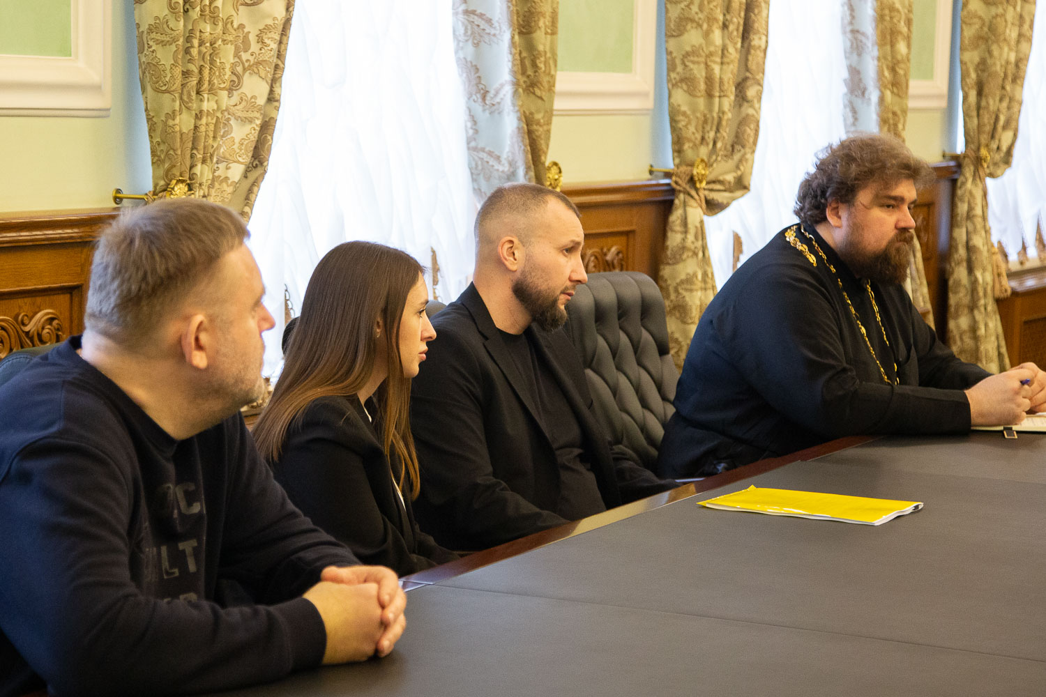 Участники обсудили этапы реставрации храма (ул. Вейнбаума, 15), который был заложен в начале XX века при городской больнице в честь визита цесаревича Николая Александровича в Красноярск. Отец Игорь рассказал о проведённых и предстоящих работах, экспертиза подтвердила высокое качество кирпичной кладки. Настоятель храма назначен ответственным за завершение реставрации.