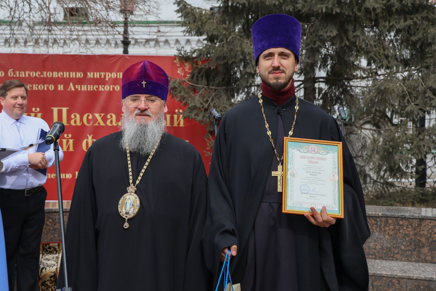 Мы собрались на Первый Пасхальный Покровский фестиваль, чтобы открыть этим мероприятием наши торжества, посвященные 165-летию Красноярской епархии, которые в течение всего года будут проходить по благословенной Красноярской земле. Храни всех Воскресший Господь!