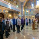 Ребята помолились за Божественной литургией в храме иконы Божией Матери «Всецарица» Успенского мужского и причастились. По окончании богослужения паломников принял секретарь Красноярской епархии, благочинный церквей Левобережного городского округа Красноярска, наместник Успенского мужского монастыря города Красноярска игумен Иннокентий (Нилов): рассказал об истории мужской обители, поговорил с ребятам о вере Христовой и пригласил на трапезу.