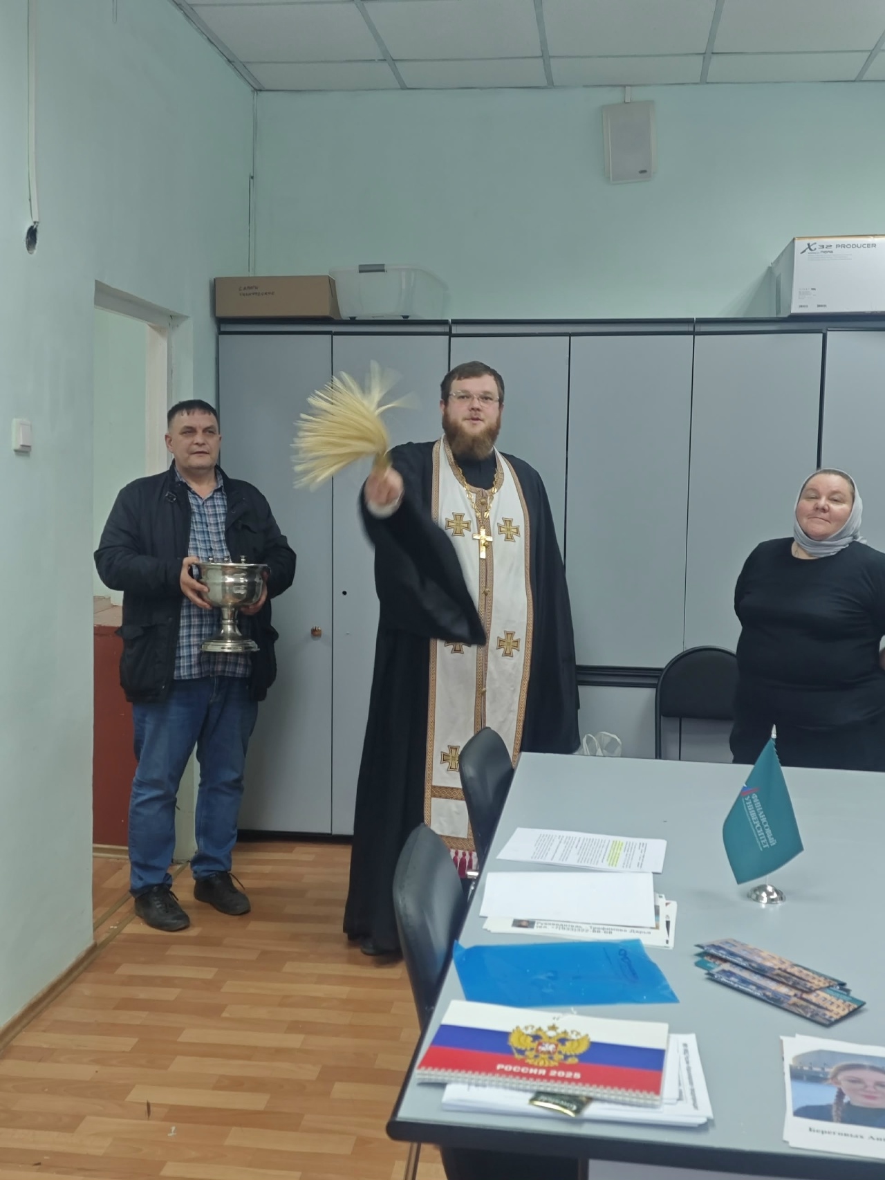 Отец Олег освятил административные кабинеты и учебные классы и выразил надежду на плодотворное сотрудничество с руководством образовательного учреждения во время учебного года.
