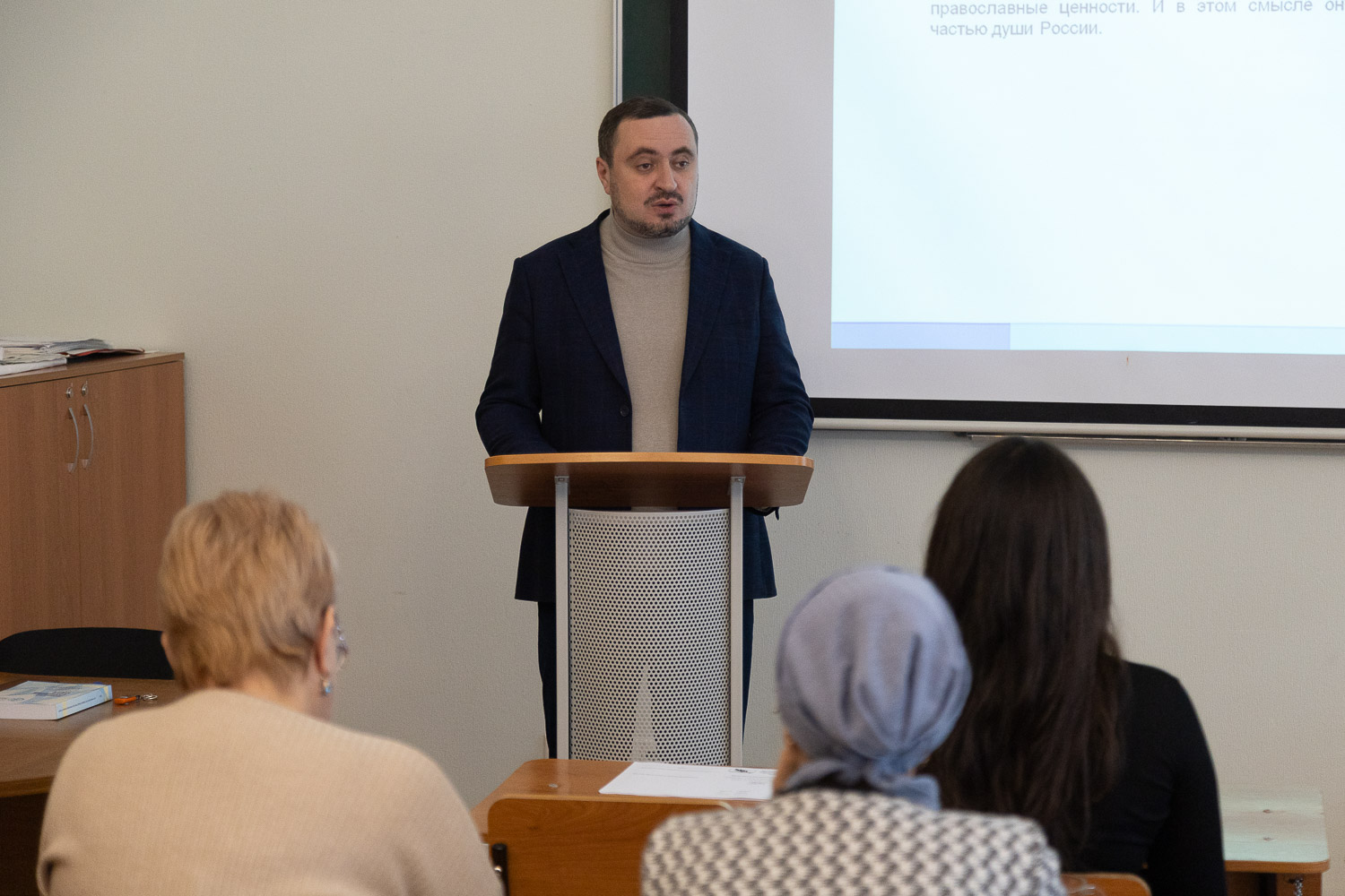 В рамках темы «Основы сотрудничества прихода с образовательными организациями» студенты узнали о практических аспектах взаимодействия между церковными и светскими учебными заведениями. Андрей Васильевич представил системный обзор действующих моделей партнёрства, осветил их правовые основы и обозначил перспективные направления для совместной просветительской деятельности.