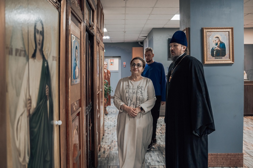 Отец Родион осмотрел новые помещения для реабилитации, спортивный зал, обновившиеся спальные места и домовой храм.