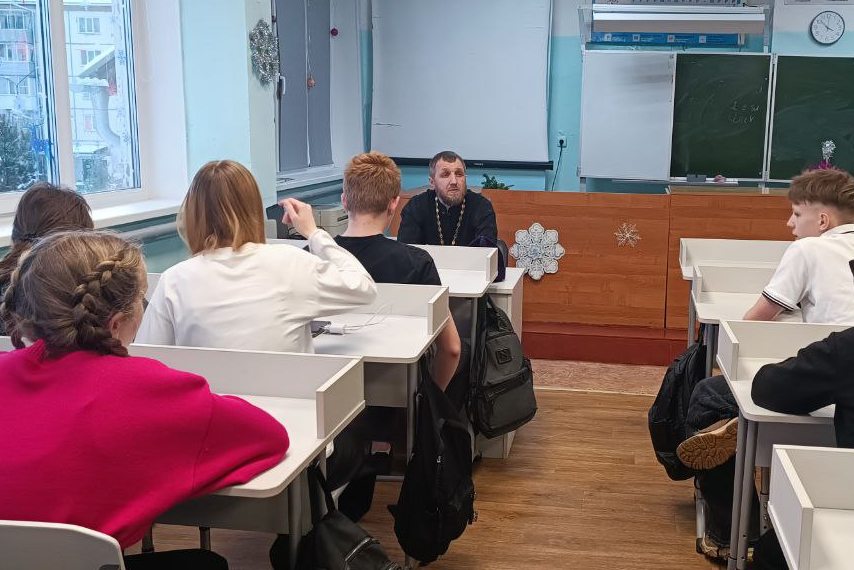 25 декабря штатный священник церкви Введения во храм Пресвятой Богородицы посёлка Берёзовка иерей Дионисий Константинов посетил среднюю школу села Зыково.