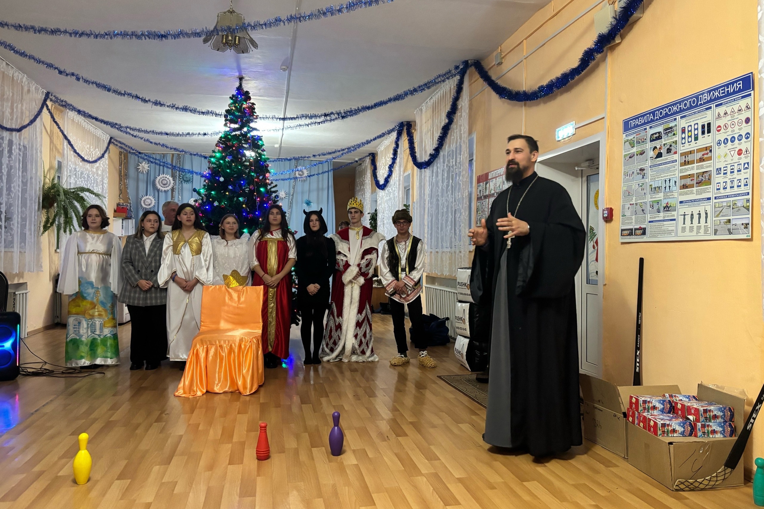 Ребята из детского дома подготовили концерт, посвященный празднику: исполнили православные песни, сыграли сценку о победе над страстями и грехами с помощью Божией. Священник поздравил воспитанников учреждения с праздником Рождества Христова и вручил подарки и сладости от прихода. Ранее, утром, некоторые из детей побывали на Божественной литургии в храме, где причастились Святых Христовых Таин.