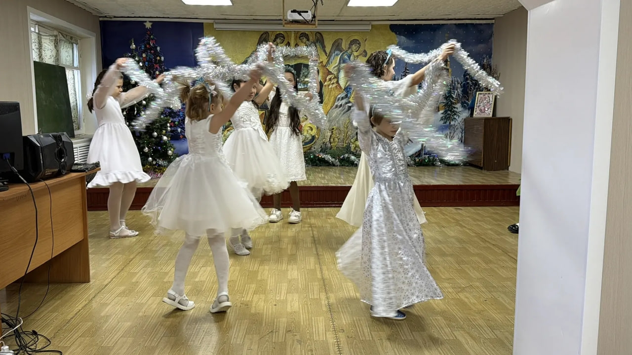 11 января по окончании Божественной Литургии в воскресной школе имени Апостола Матфея при соборе Святой Троицы города Шарыпово состоялся праздничный Рождественский концерт.