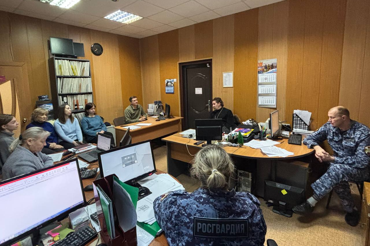 Накануне праздника Крещения Господня штатный клирик церкви Введения во храм Пресвятой Богородицы города Сосновоборска иерей Сергий Гридин посетил подразделение Росгвардии, где провёл для сотрудников духовную беседу.