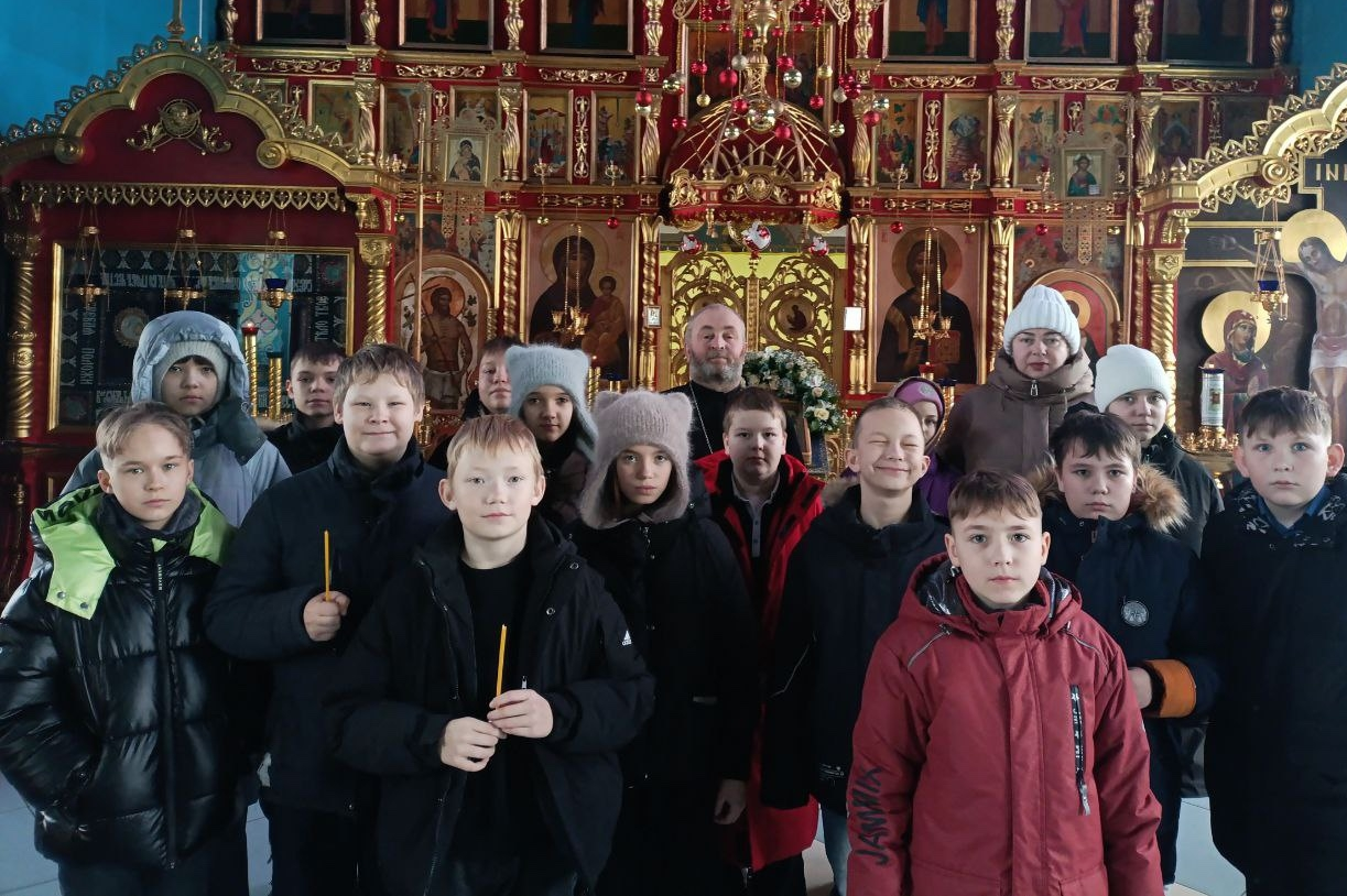 На минувшей неделе, в храме Покрова Божией Матери города Назарово прошла познавательная встреча для учащихся 4-го класса средней школы №1, которую провёл штатный священник храма иерей Владимир Золотухин.