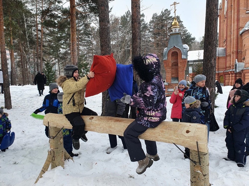 Для гостей работали ремесленные и торговые ряды с угощениями. Желающие могли принять участие в народных забавах: хождении на ходулях, лыжных гонках, метании снежков, битве подушками, играх «Царь горы» и «Свайка». Для детей работали ледяная горка-катушка и карусель.