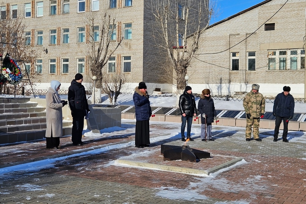 В День защитника Отечества в городе Ужур у памятника «Скорбящая мать» состоялось мероприятие, посвящённое всем, кто защищает страну. Почётным гостем стал настоятель храма святых первоверховных апостолов Петра и Павла протоиерей Павел Третьяков.