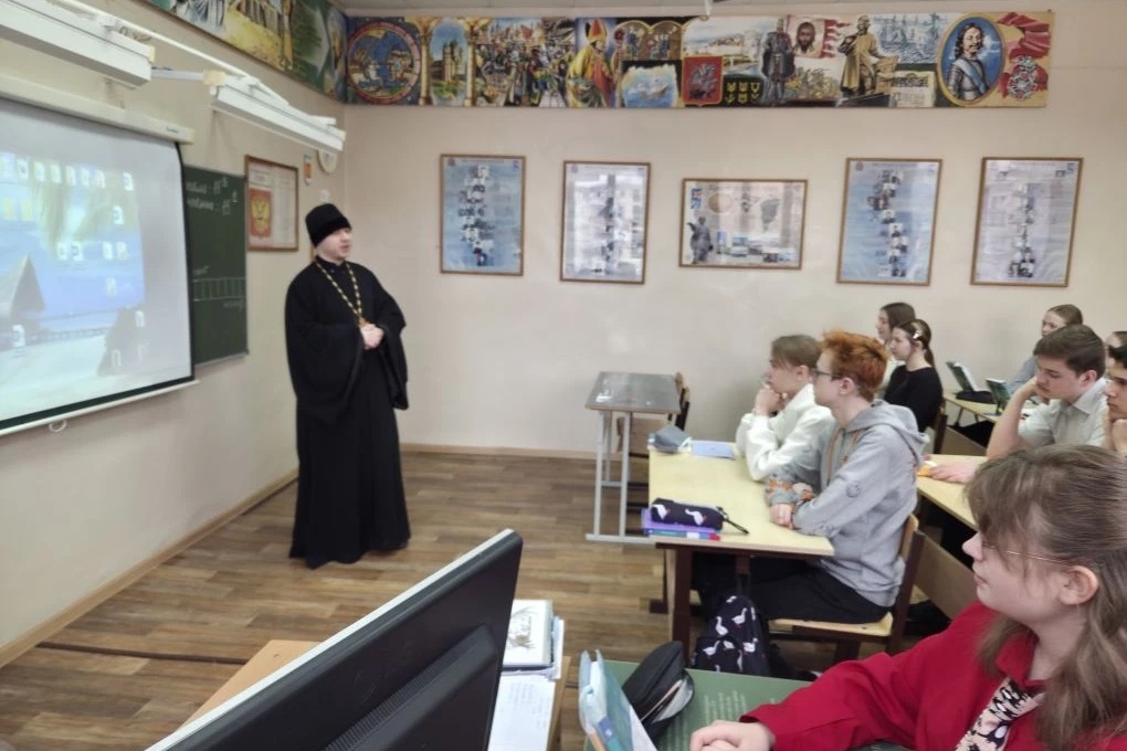 Священник рассказал ученикам о значении десяти заповедей в жизни христианина и о том, как они соотносятся с нормами права и законами государства. Он отметил, что библейские заповеди являются основой не только религиозной, но и правовой культуры, и привёл примеры того, как их нарушение приводит к нарушению гражданских законов и социальным проблемам.