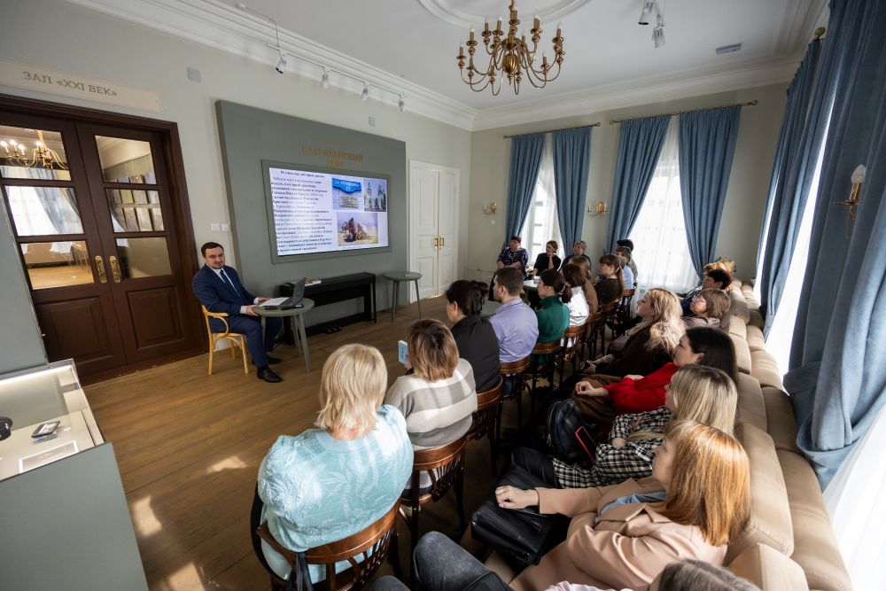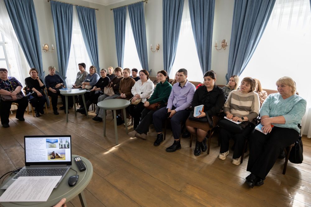 Андрей Васильевич рассказал о Касьяновском доме, после чего прочитал лекцию на тему «Духовно-нравственные ценности и традиционные религии России», передал учителям методические рекомендации и региональные культурно-просветительские материалы.