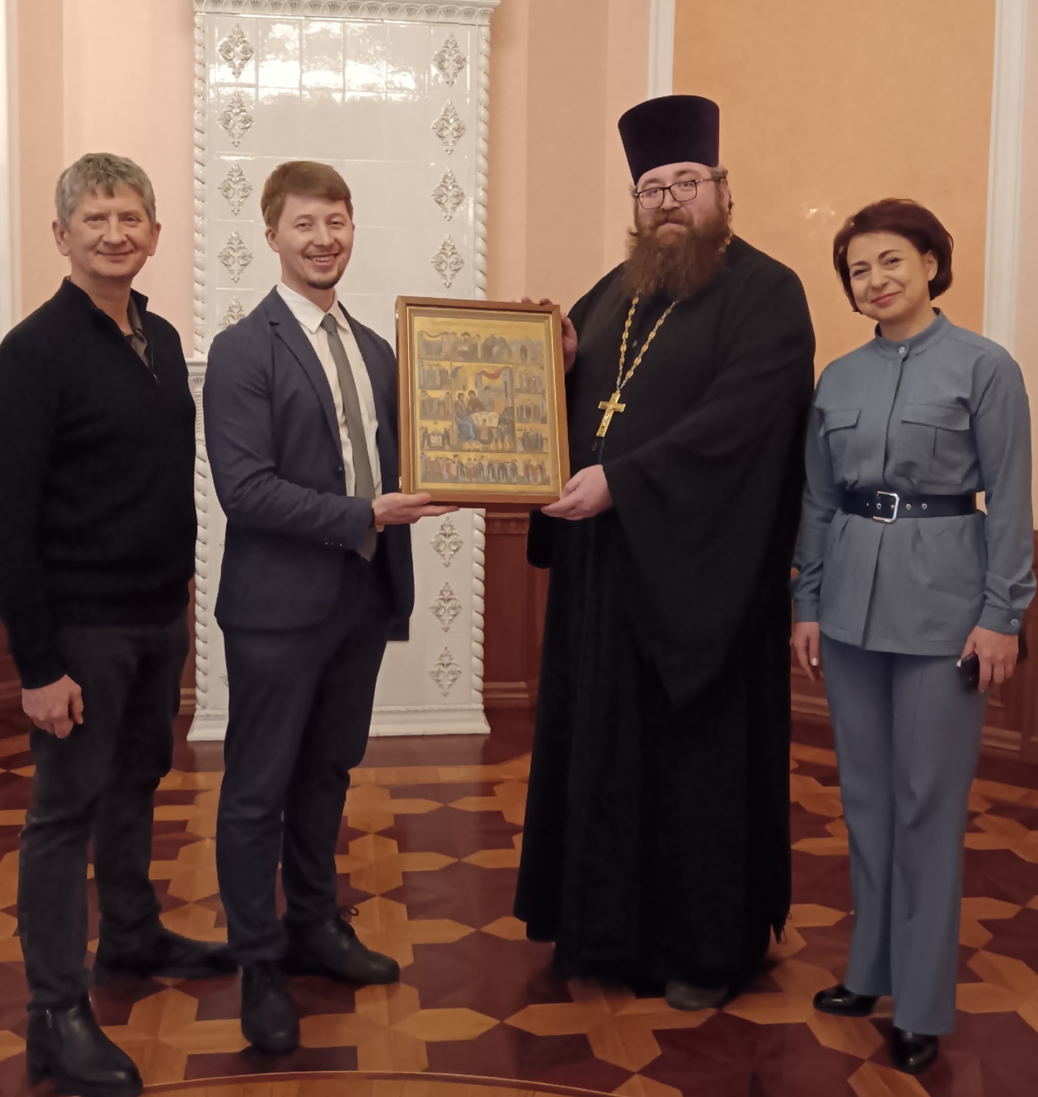 Собравшиеся обсудили вопросы рождаемости и многодетности, совершенствование демографической политики в Красноярском крае. Григорий Петрович передал в дар Красноярской епархии икону с изображением святых покровителей семьи, брака, чадородия и воспитания чад. Икона была написана в 2020 году по благословению протоиерея Димитрия Смирнова, который как художник и священник принял активное участие в разработке её композиции.