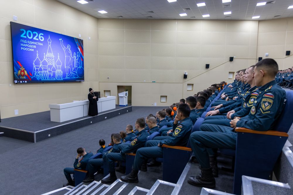 5 апреля штатный клирик собора Архангела Михаила иерей Виктор Мамаев посетил Сибирскую пожарно-спасательную академию ГПС МЧС России. В рамках ранее подписанного соглашения священник провёл беседу с курсантами и студентами о празднике Входа Господня в Иерусалим (Вербном воскресенье).
