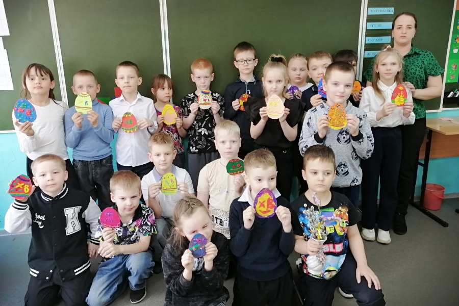 Первоклассники вместе с учителем Оксаной Григорьевой изготавливали пасхальные яйца. Также перед ребятами выступила педагог дополнительного образования, руководитель музейной комнаты и преподаватель воскресной школы при храме святителя Николая села Большой Улуй Людмила Ускова. Она рассказала школьникам о местночтимом святом Данииле Ачинском.