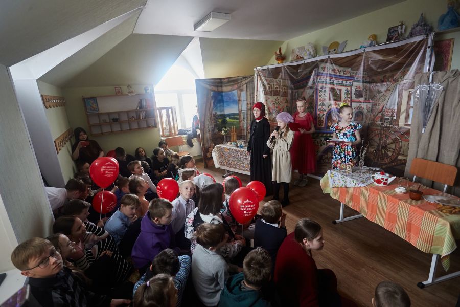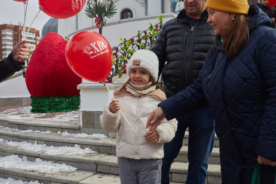 Днем для прихожан и гостей была подготовлена насыщенная программа: на территории храма работала пасхальная ярмарка воскресной школы, где воспитанники и их родители представили поделки и угощения; дети и взрослые участвовали в конкурсах и подвижных играх. Каждый желающий мог подняться на открытую колокольню и попробовать себя в роли звонаря. Для самых маленьких и тех, кто особенно нуждался во внимании, организовали раздачу подарков. Воспитанники воскресной школы и приходской хор подготовили для зрителей театральные выступления и пасхальный концерт.