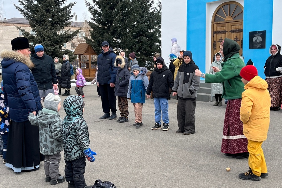 Праздник продолжился на свежем воздухе: дети и взрослые водили хороводы, играли в традиционные народные игры. Затем всех ждали накрытые столы с крашеными яйцами, ароматными куличами и сбитнем — русским напитком, который согревает в прохладную погоду.