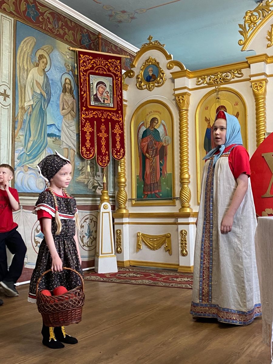 На приходе собора Святой Троицы города Красноярска силами учеников, родителей и преподавателей воскресной школы организовали пасхальный концерт. Юные артисты исполнили песни о Воскресшем Христе, читали стихи и показали театральную сценку, поделившись пасхальной радостью с прихожанами и гостями собора.