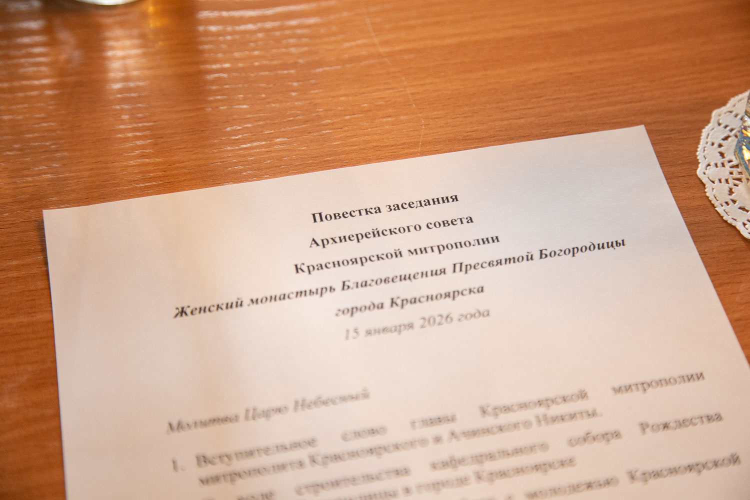15 января в женском монастыре Благовещения Пресвятой Богородицы города Красноярска митрополит Красноярский и Ачинский Никита возглавил работу первого в новом году Архиерейского Совета. В заседании приняли участие епископ Норильский и Туруханский Агафангел, епископ Енисейский и Лесосибирский Игнатий, епископ Минусинский и Курагинский Серафим и епископ Канский и Богучанский Вячеслав.