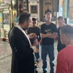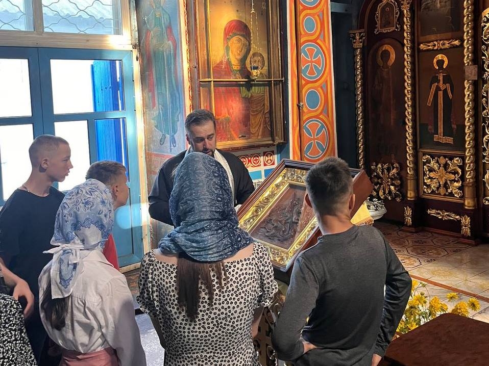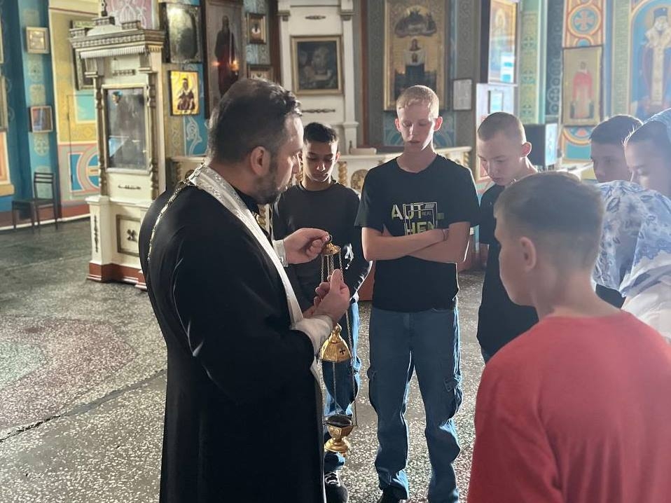 Штатный священник Казанского собора иерей Артемий Катюшкин рассказал ребятам об истории храма, его святых, провёл беседу о православии и духовных ценностях.