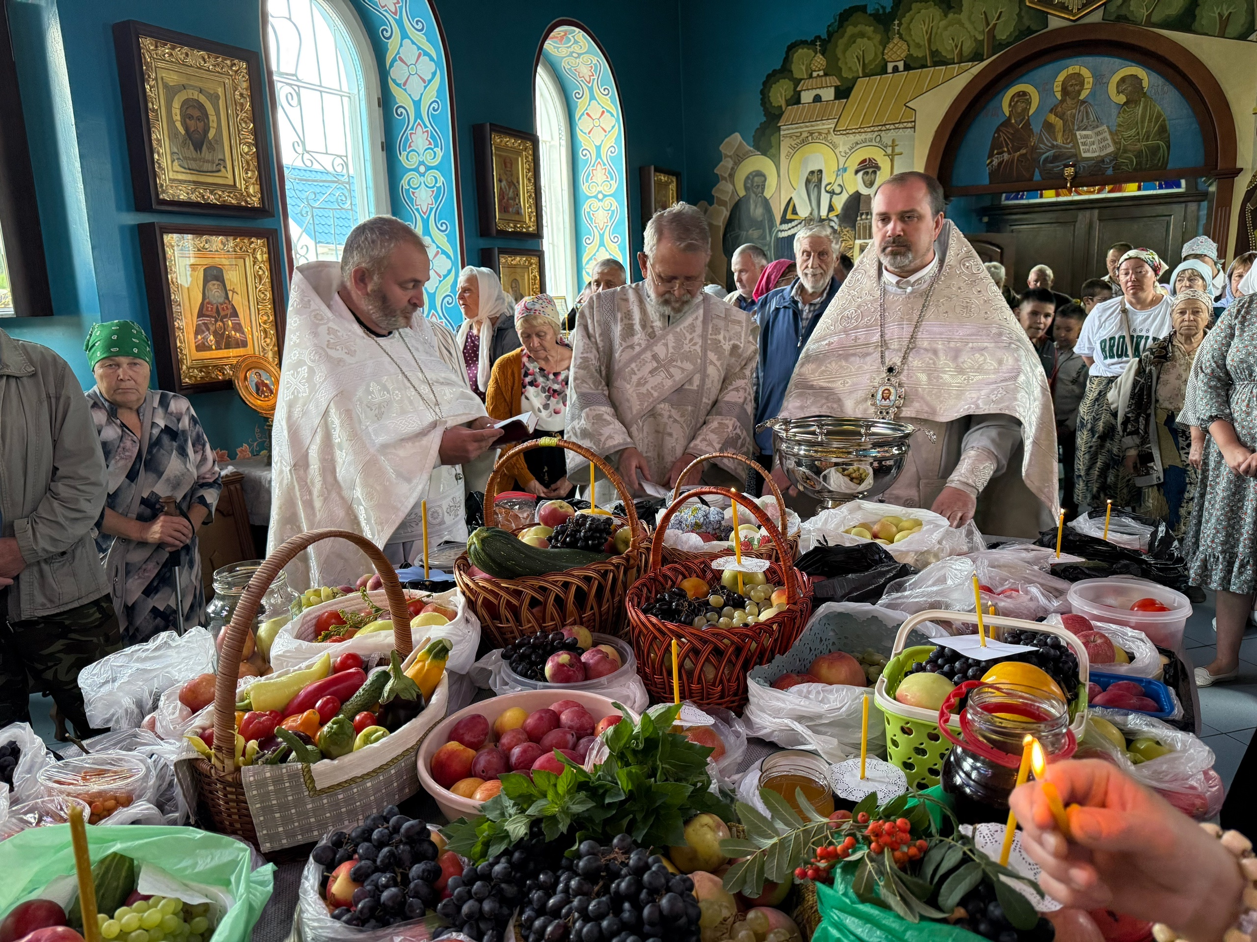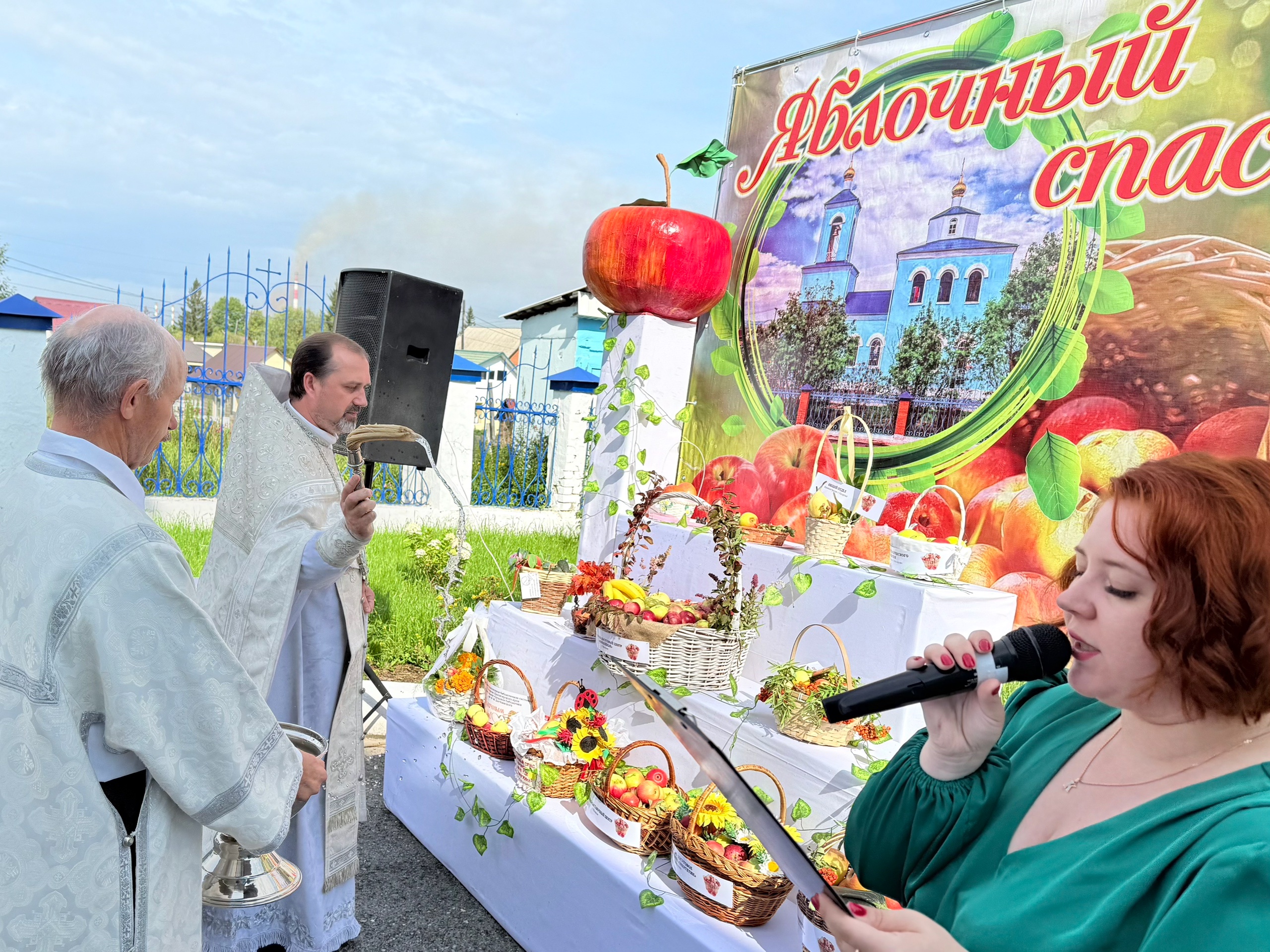 Перед концертом благочинный церквей Назаровского округа, настоятель Покровского храма города Назарово протоиерей Евгений Нещерет совершил богослужение и чин освящения плодов.