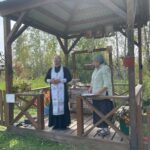 Штатный клирик Покровского храма иерей Владимир Золотухин возглавил богослужение в день почитания святых, после чего обратился к местным жителям с проповедью. Отец Владимир также рассказал верующим историю обретения источника.