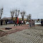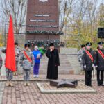По завершении богослужения отец Павел окропил копию Знамени Победы и всех присутствующих святой водой.