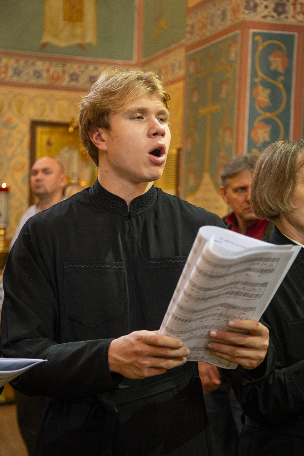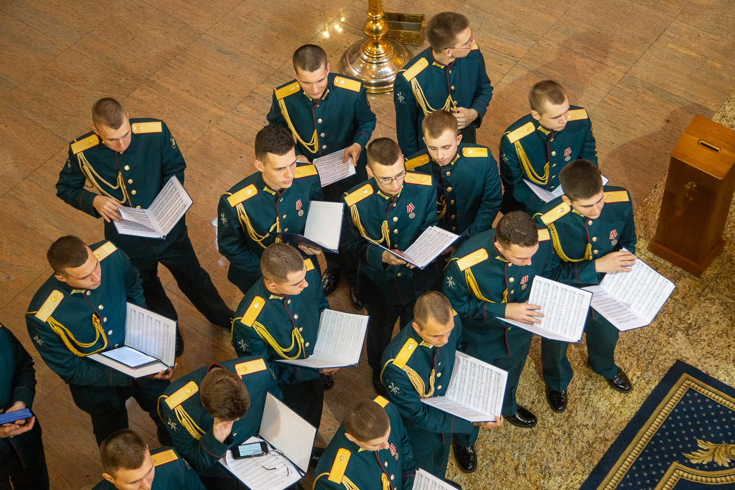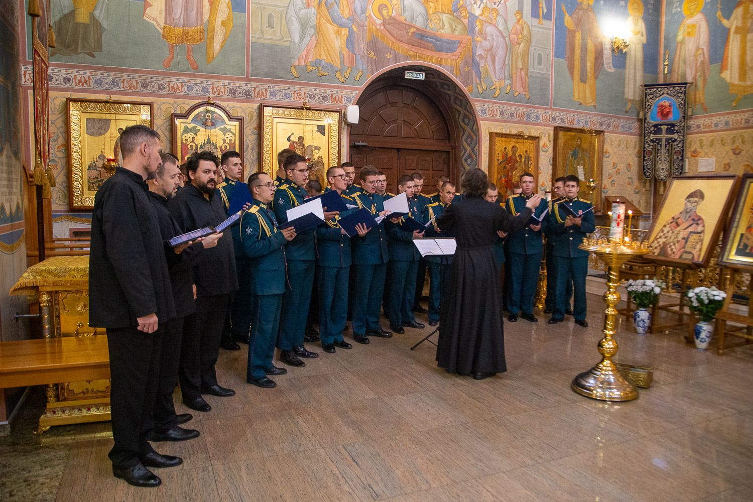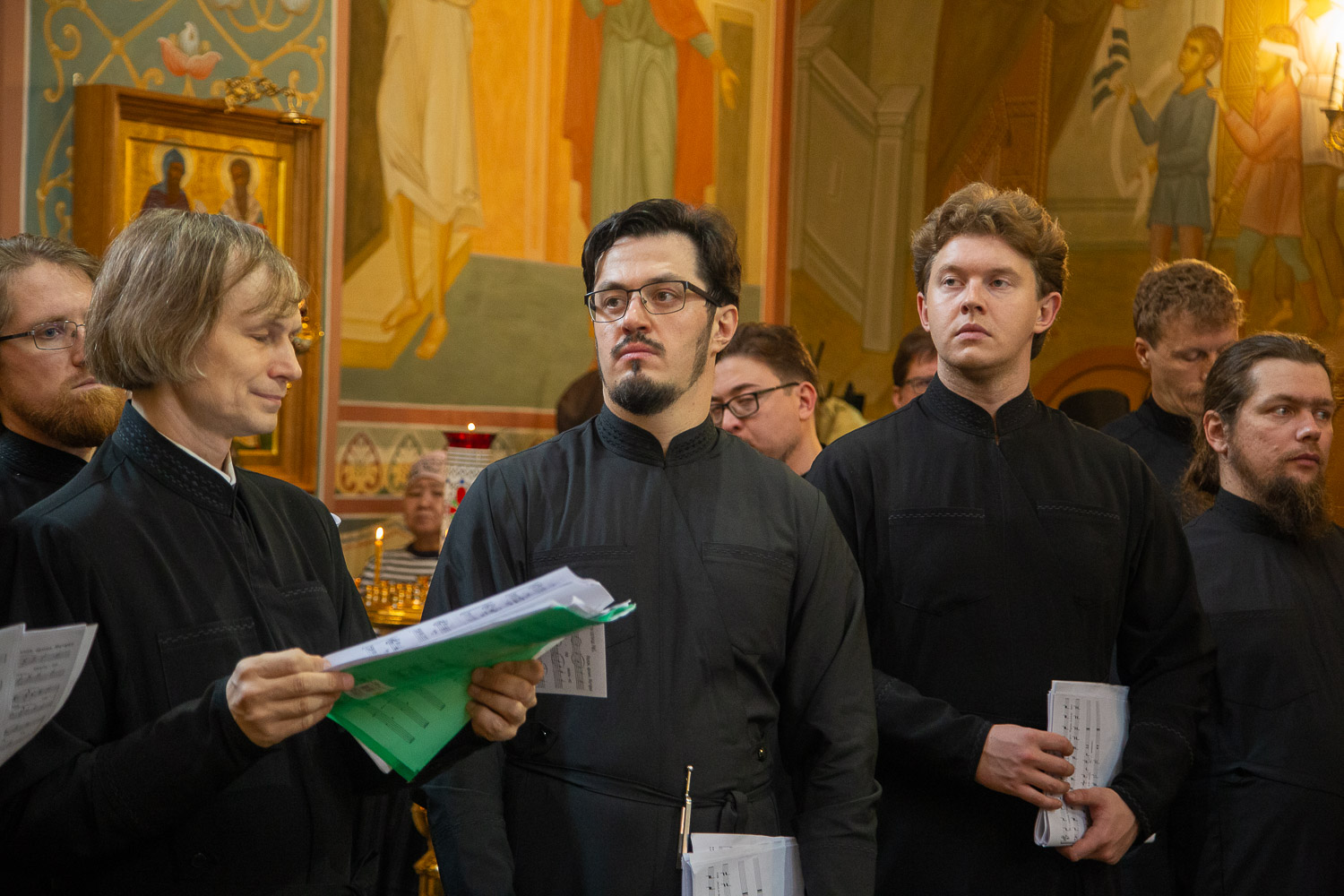 Пел сборный хор из участников Фестиваля мужских хоров, который проходит на Красноярской земле с 7 июля по 31 октября: Архиерейский мужской хор Симбирской митрополии; хор Успенской мужской обители Красноярска; православный хор и ансамбль инженерных войск Вооружённых сил Российской Федерации «За Веру и Отечество». Регентом сборного хора выступил президент «Федерации мужских хоров и ансамблей» Георгий Сафонов.