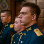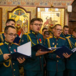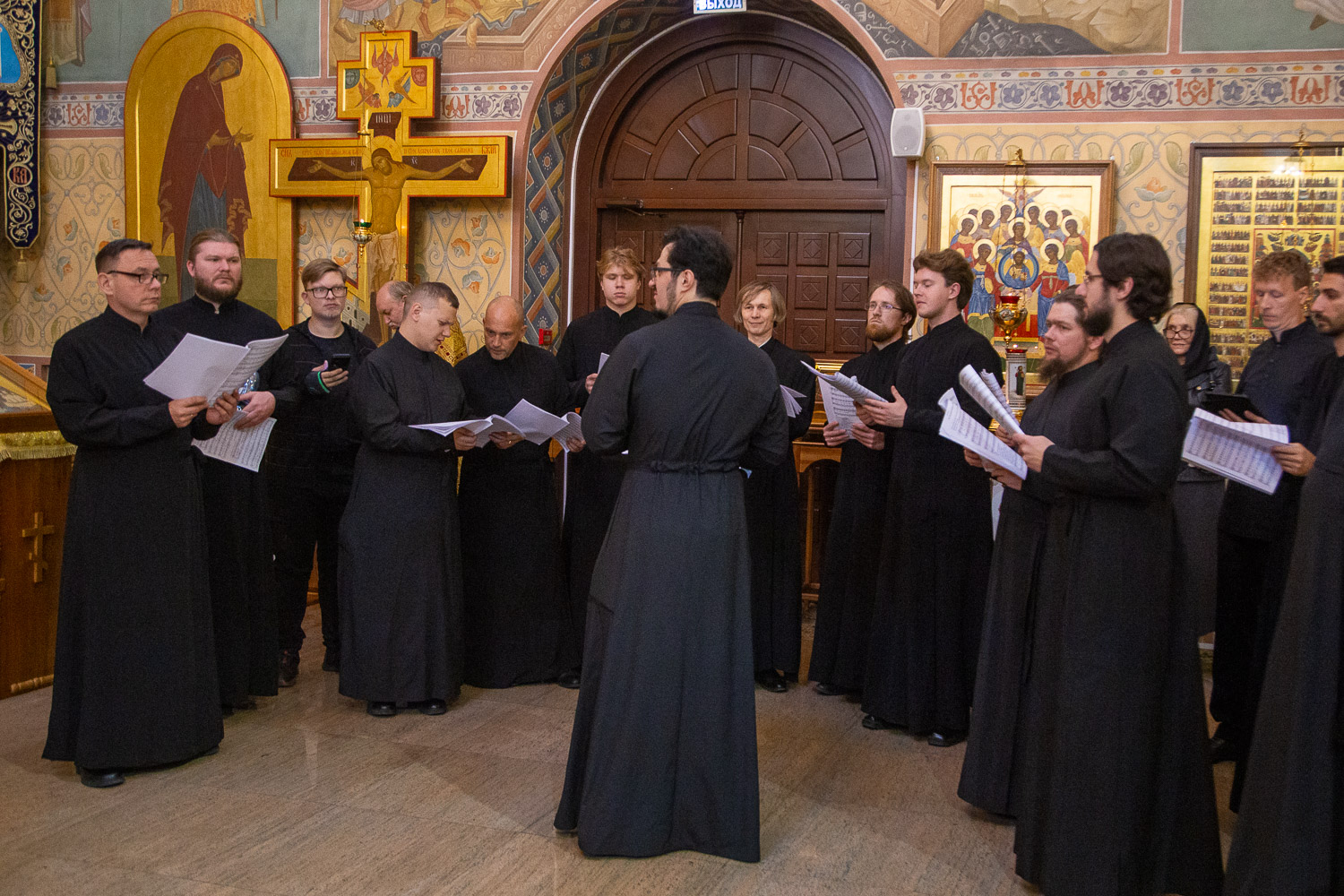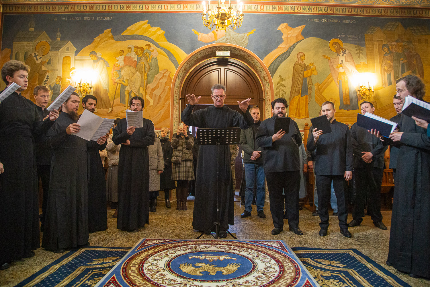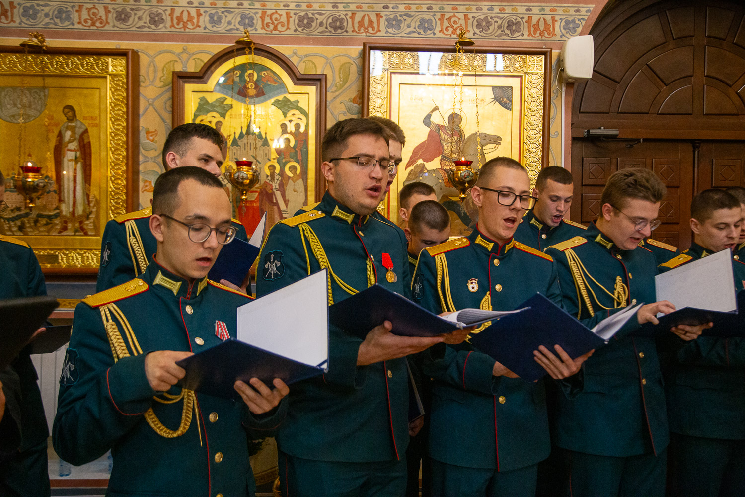 Пел сборный хор из участников Фестиваля мужских хоров, который проходит на Красноярской земле с 7 июля по 31 октября: Архиерейский мужской хор Симбирской митрополии; хор Успенской мужской обители Красноярска; православный хор и ансамбль инженерных войск Вооружённых сил Российской Федерации «За Веру и Отечество». Регентом сборного хора выступил президент «Федерации мужских хоров и ансамблей» Георгий Сафонов.