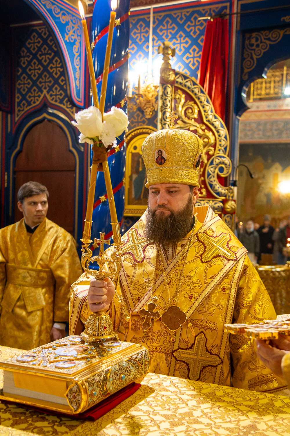 По окончании богослужения владыка Игнатий обратился к собравшимся со словом проповеди, после чего поздравил с днём тезоименитства секретаря Красноярской епархии, благочинного церквей Левобережного городского округа Красноярска, наместника Успенского мужского монастыря игумена Иннокентия (Нилова).