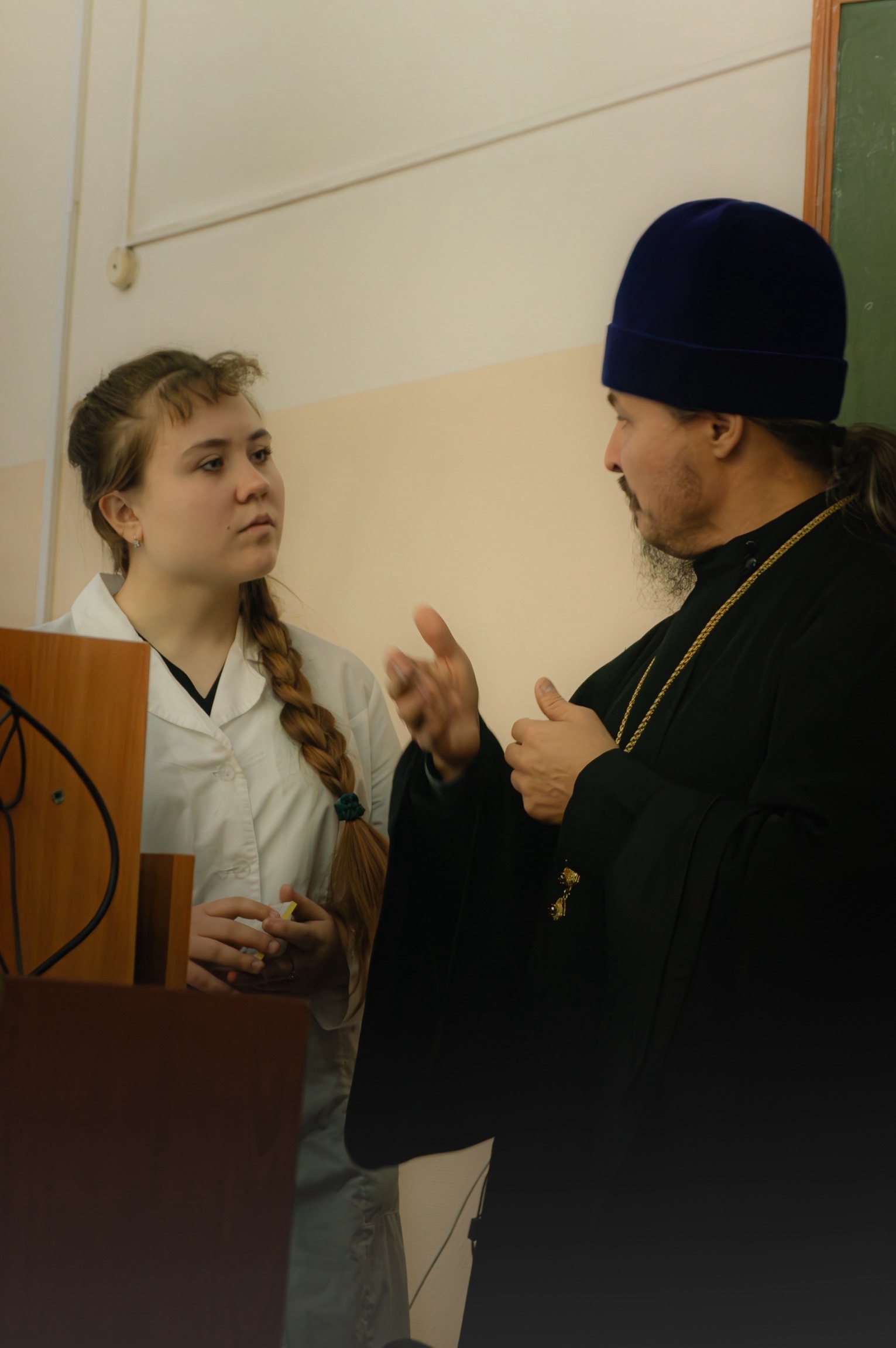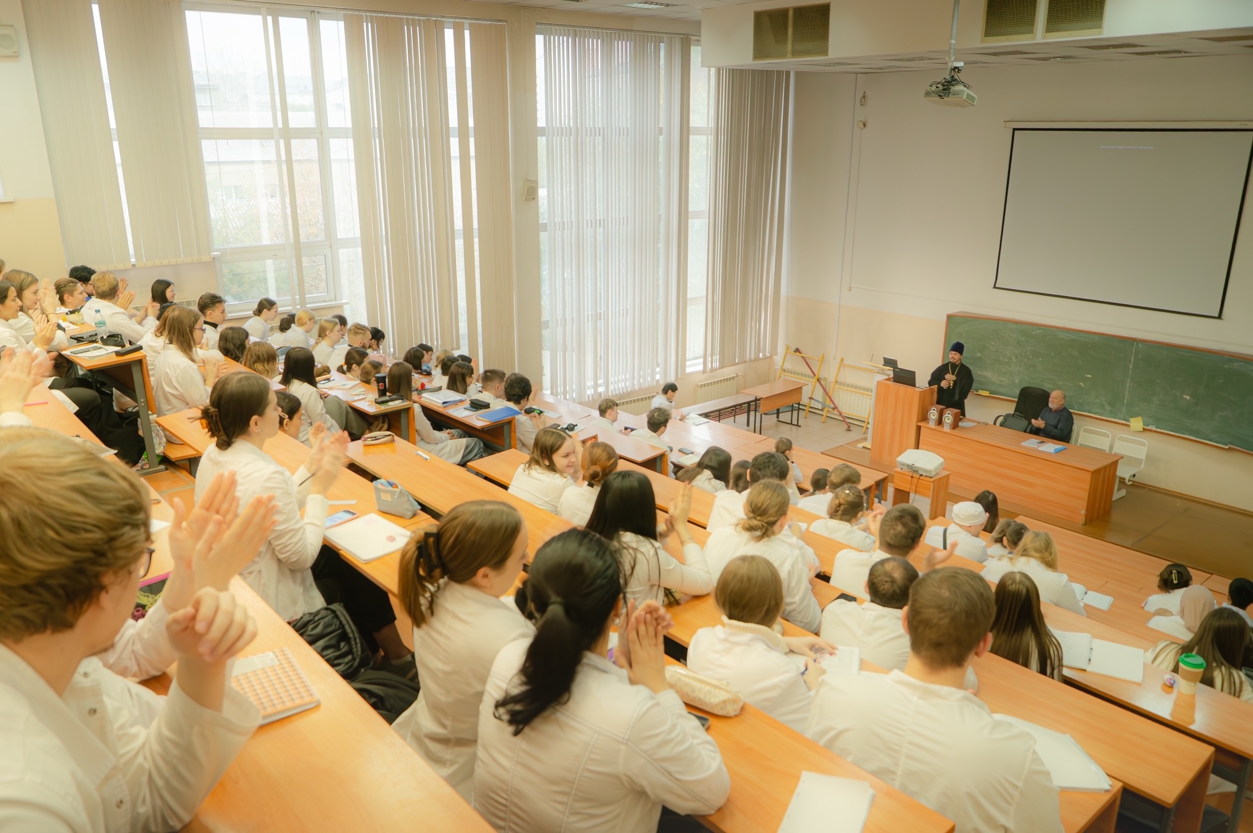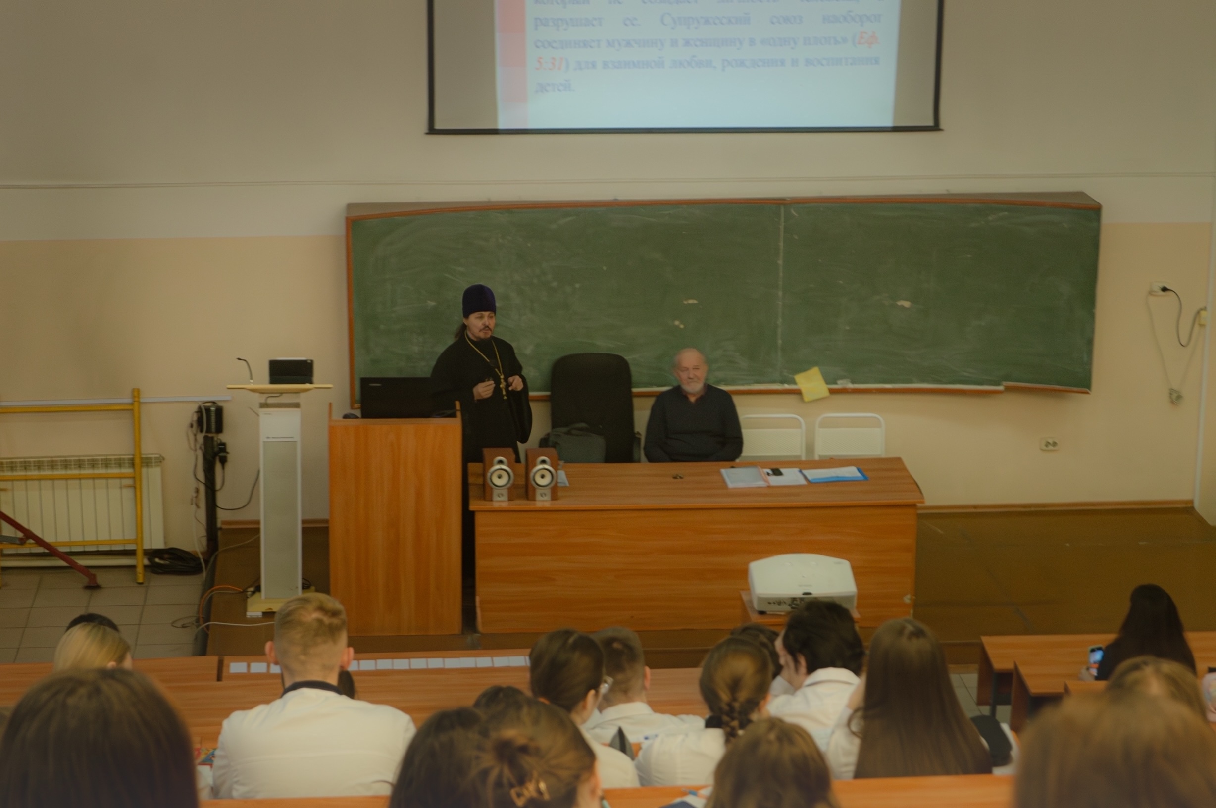 Темой встречи стало рассмотрение вопросов вмешательства в репродукцию человека с православной, медицинской и исторической точек зрения. В ходе лекции будущие врачи проявили активный интерес к представленному материалу, задавали вопросы и участвовали в дискуссии.