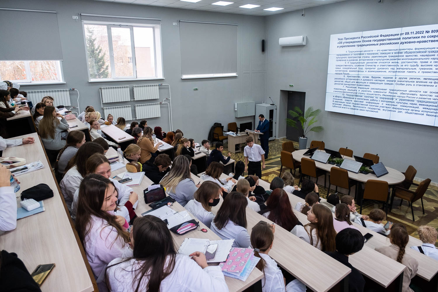 Директор Архиерейского образовательного центра, заместитель председателя Общественной палаты Красноярского края Андрей Бардаков обсудил со студентами тему духовно-нравственных ценностей.