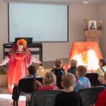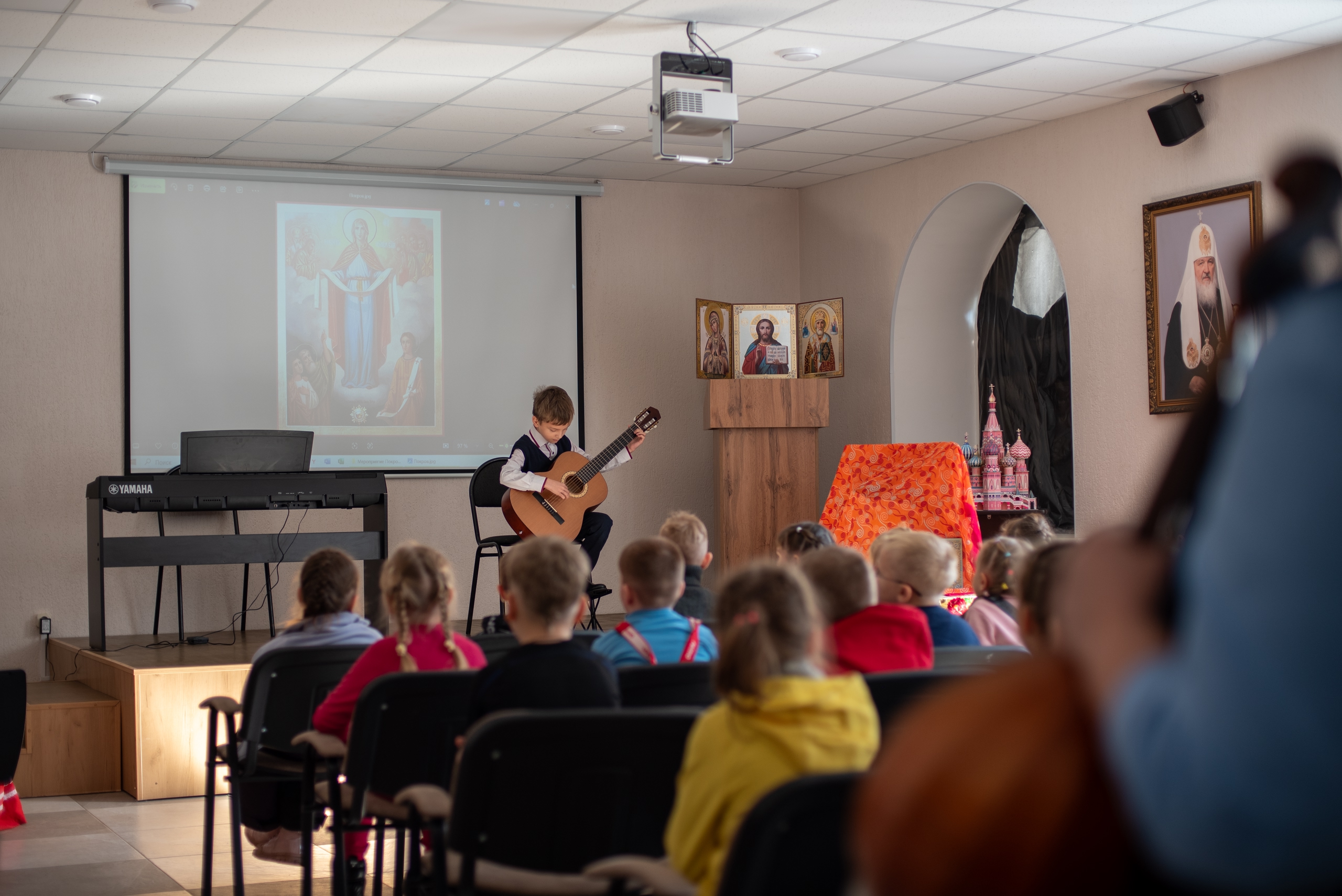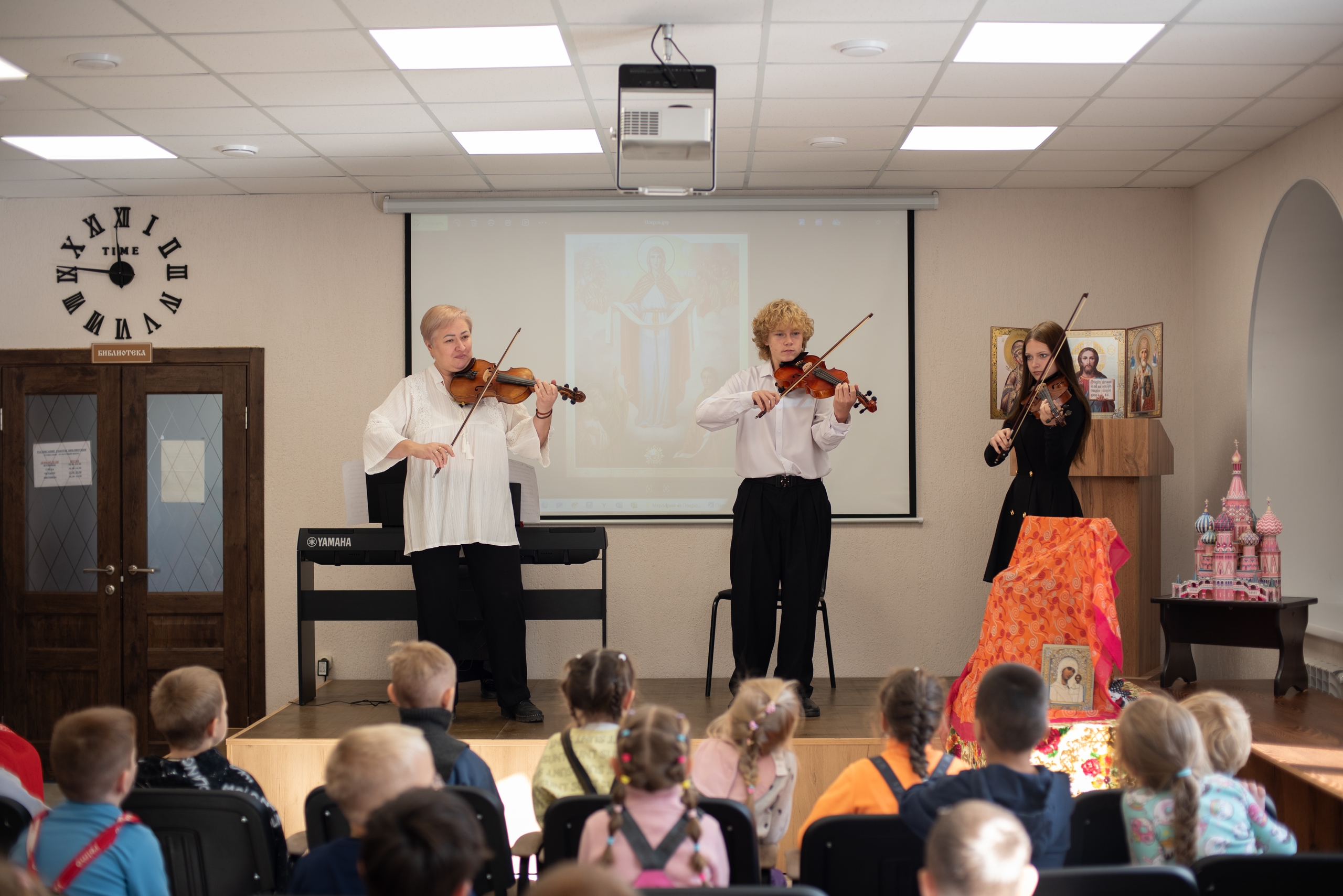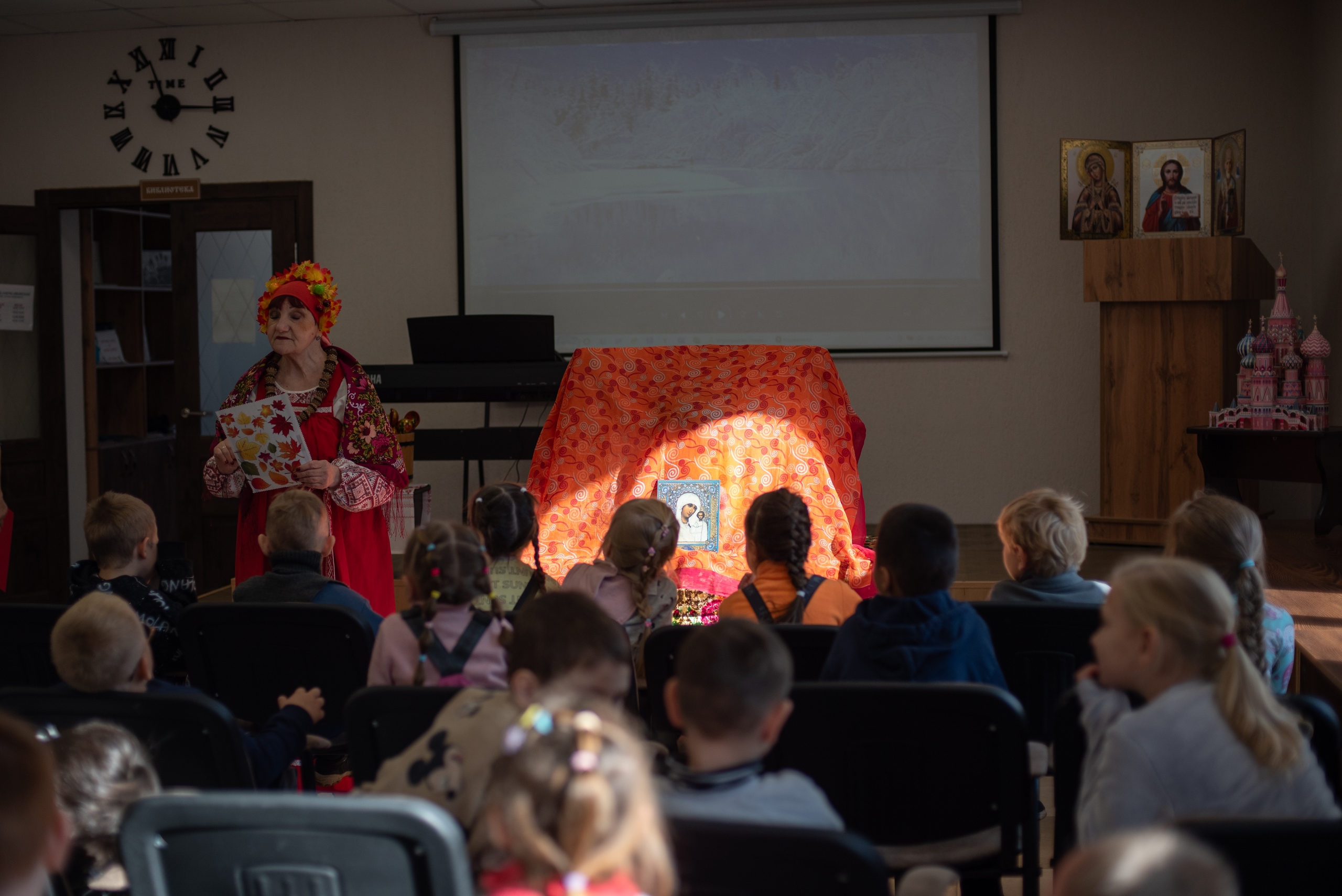 Мероприятие началось с театральной постановки, которую разыграла мастер изготовления кукол, поэт и автор сказок Наталья Геннадьевна Шурмель. Далее ребятам рассказали о празднике Покрова Божией Матери, показали видеосюжет и предложили сыграть на народных музыкальных инструментах.