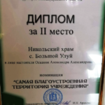 В начале 2025 года настоятель храма протоиерей Александр Осипов получил Диплом за 2-е место в конкурсе по благоустройству территории.