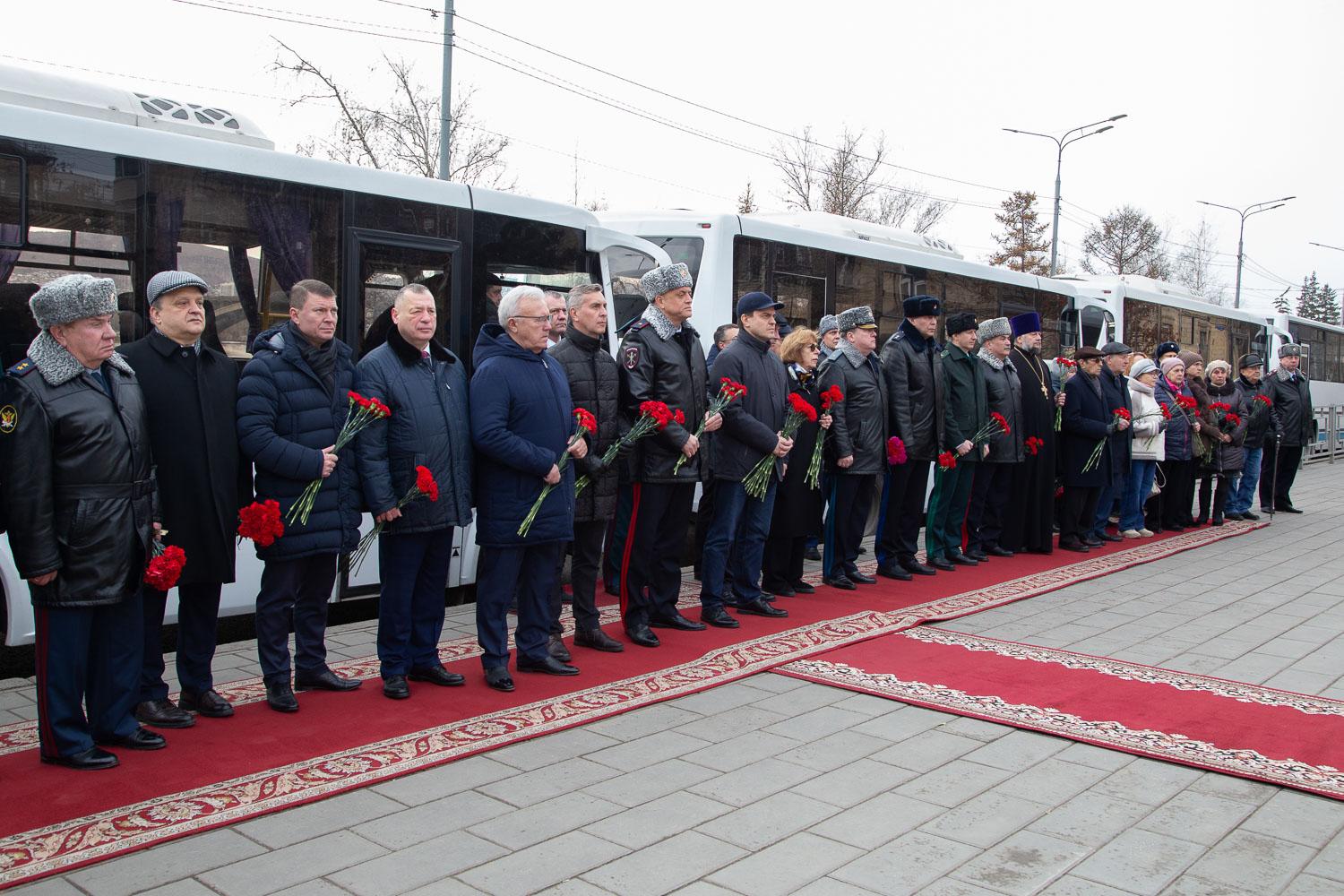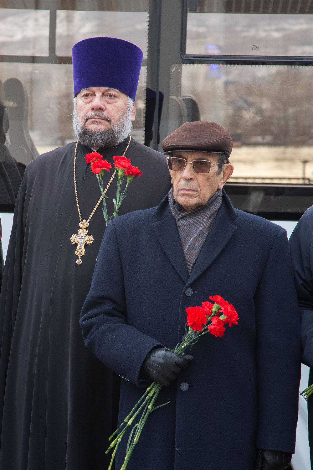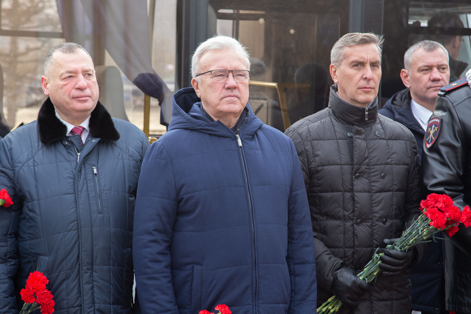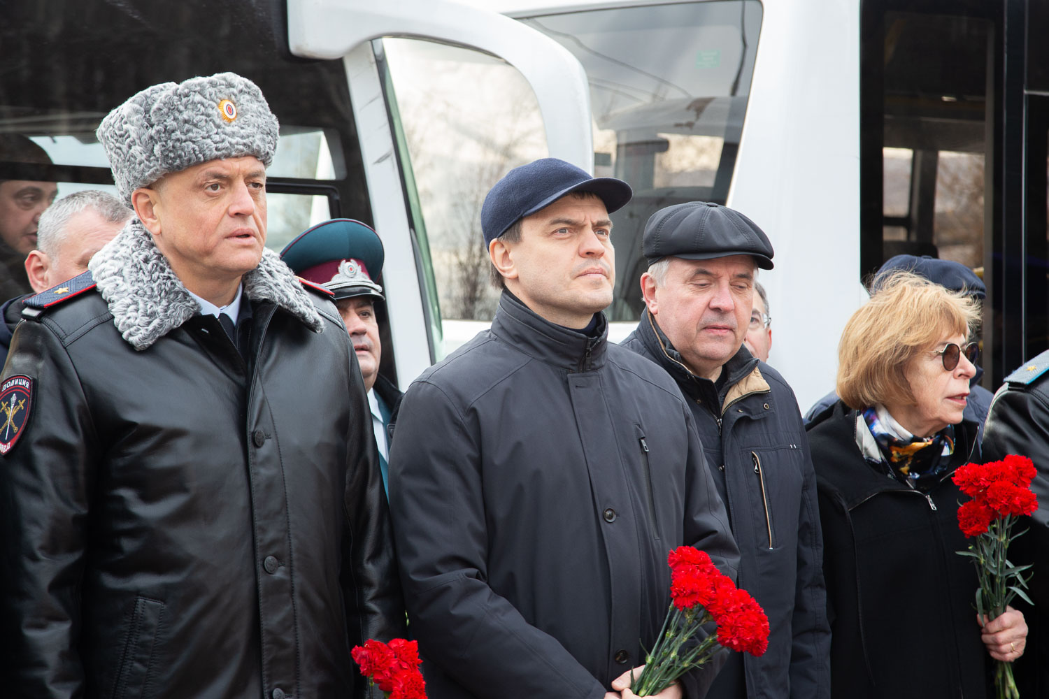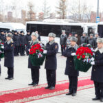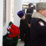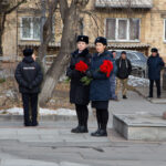Присутствующие почтили минутой молчания сотрудников, героически павших, защищая покой граждан, и возложили венки и цветы к мемориальной плите.