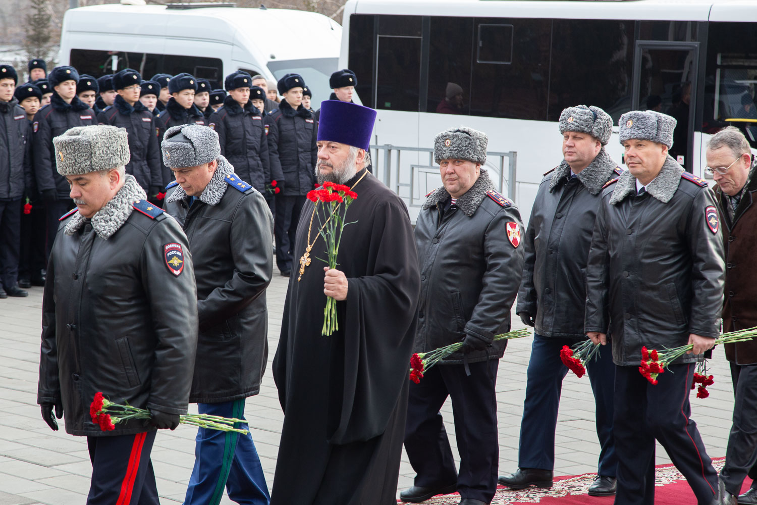 Полицейские со всего Красноярска собрались, чтобы почтить память коллег, отдавших жизнь на боевом посту.